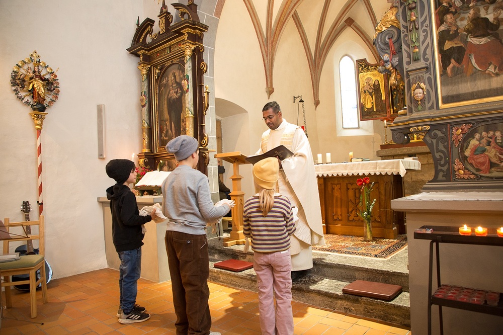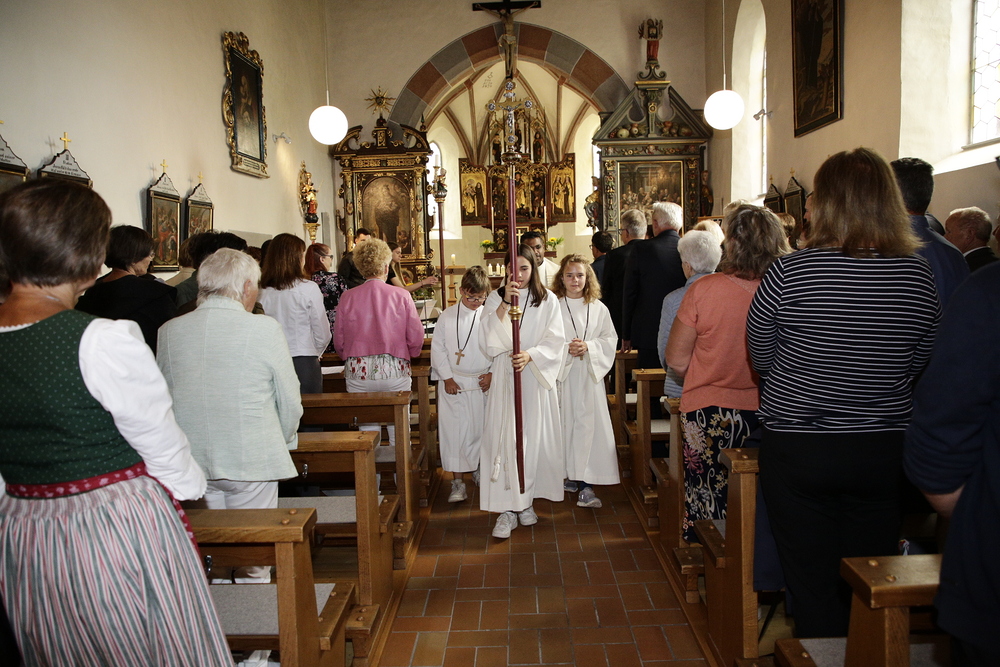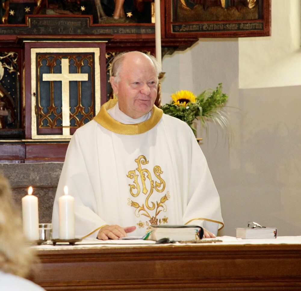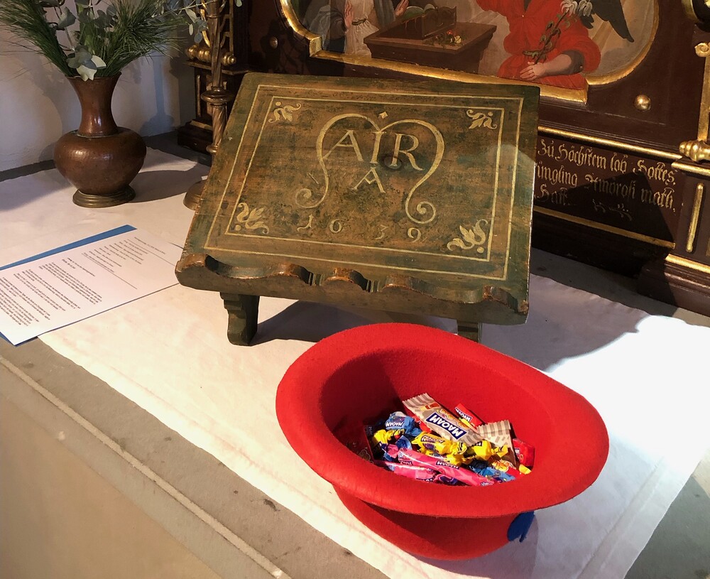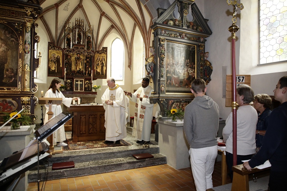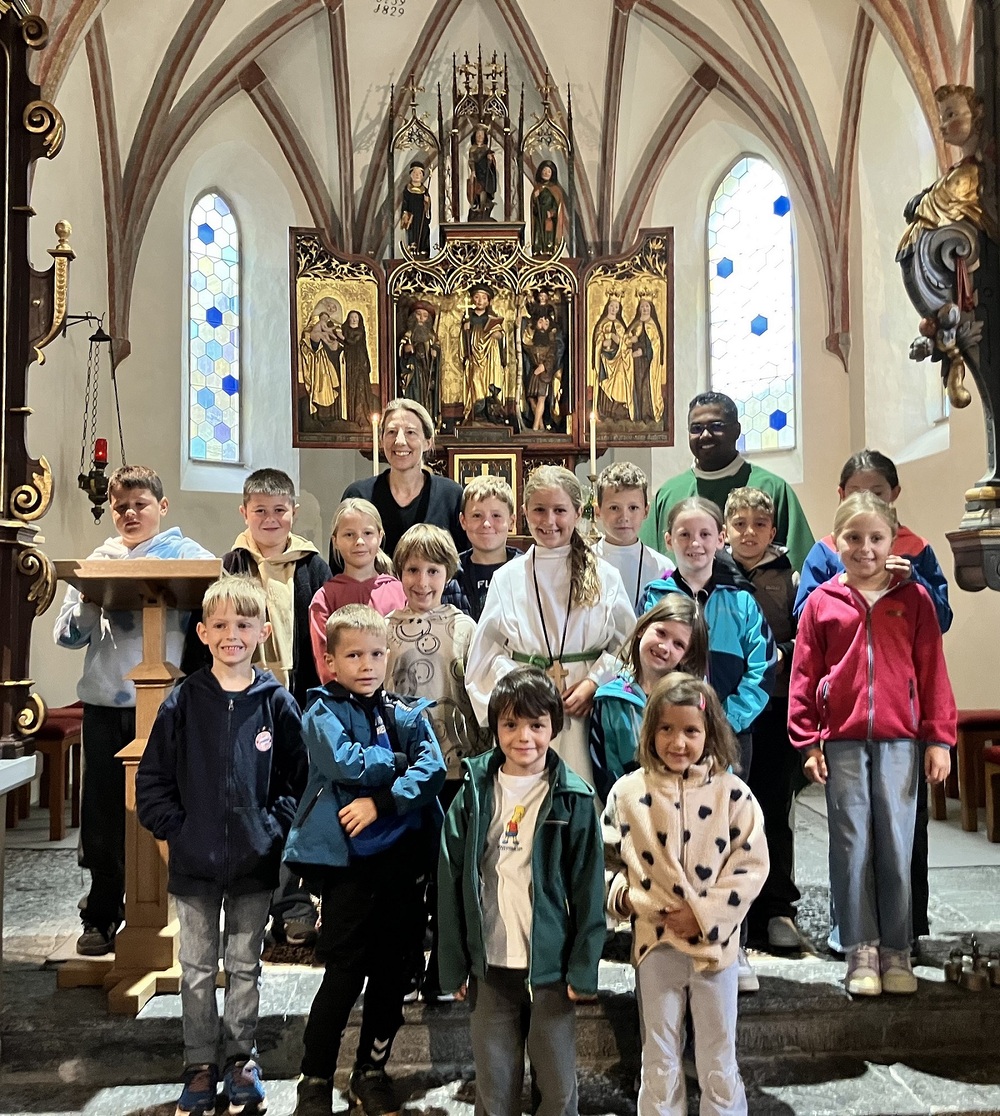 Pfarrer Lojin feierte mit zahlreichen Kindern und Erwachsenen den Erntedankgottesdienst. Sabrina las den Kindern eine Geschichte zum Thema Dankbarkeit vor. Theresia und Otto übernahmen einmal mehr die musikalische Umrahmung.