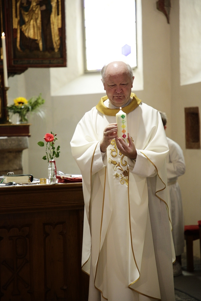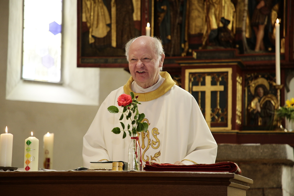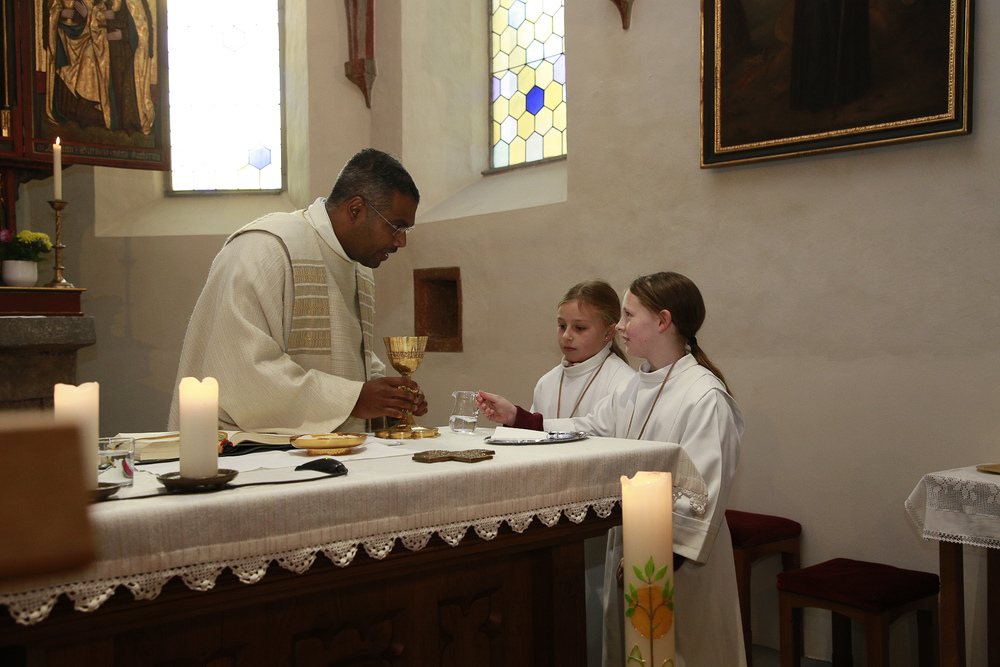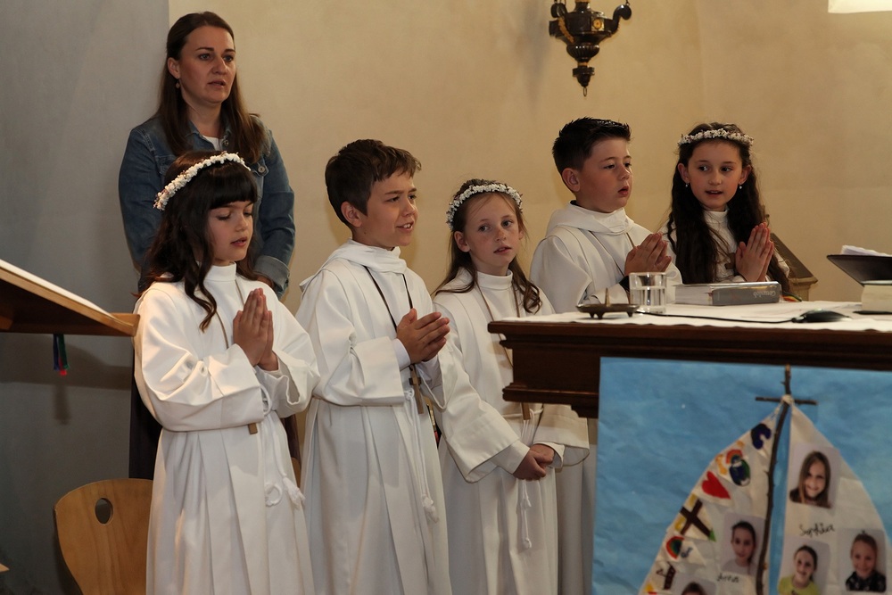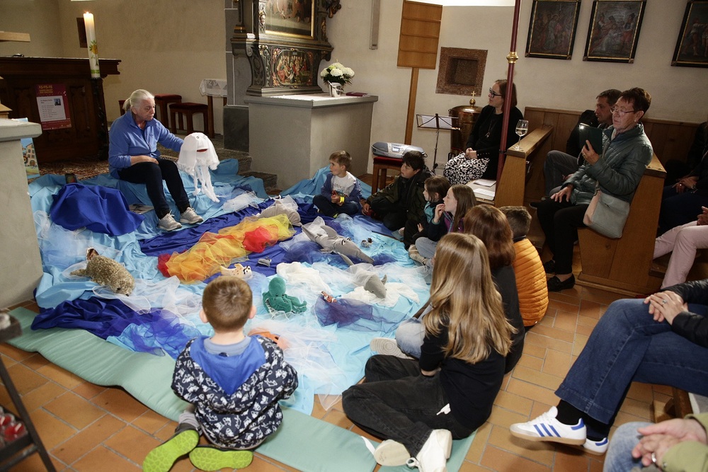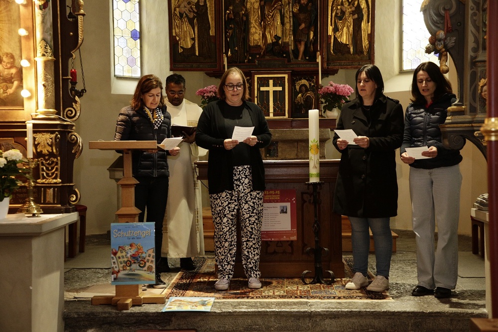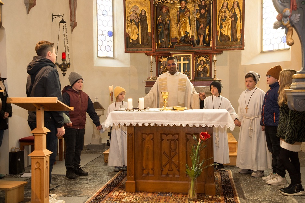 Pfarrer Lojin feierte mit zahlreichen Kindern und Erwachsenen den Erntedankgottesdienst. Sabrina las den Kindern eine Geschichte zum Thema Dankbarkeit vor. Theresia und Otto übernahmen einmal mehr die musikalische Umrahmung.