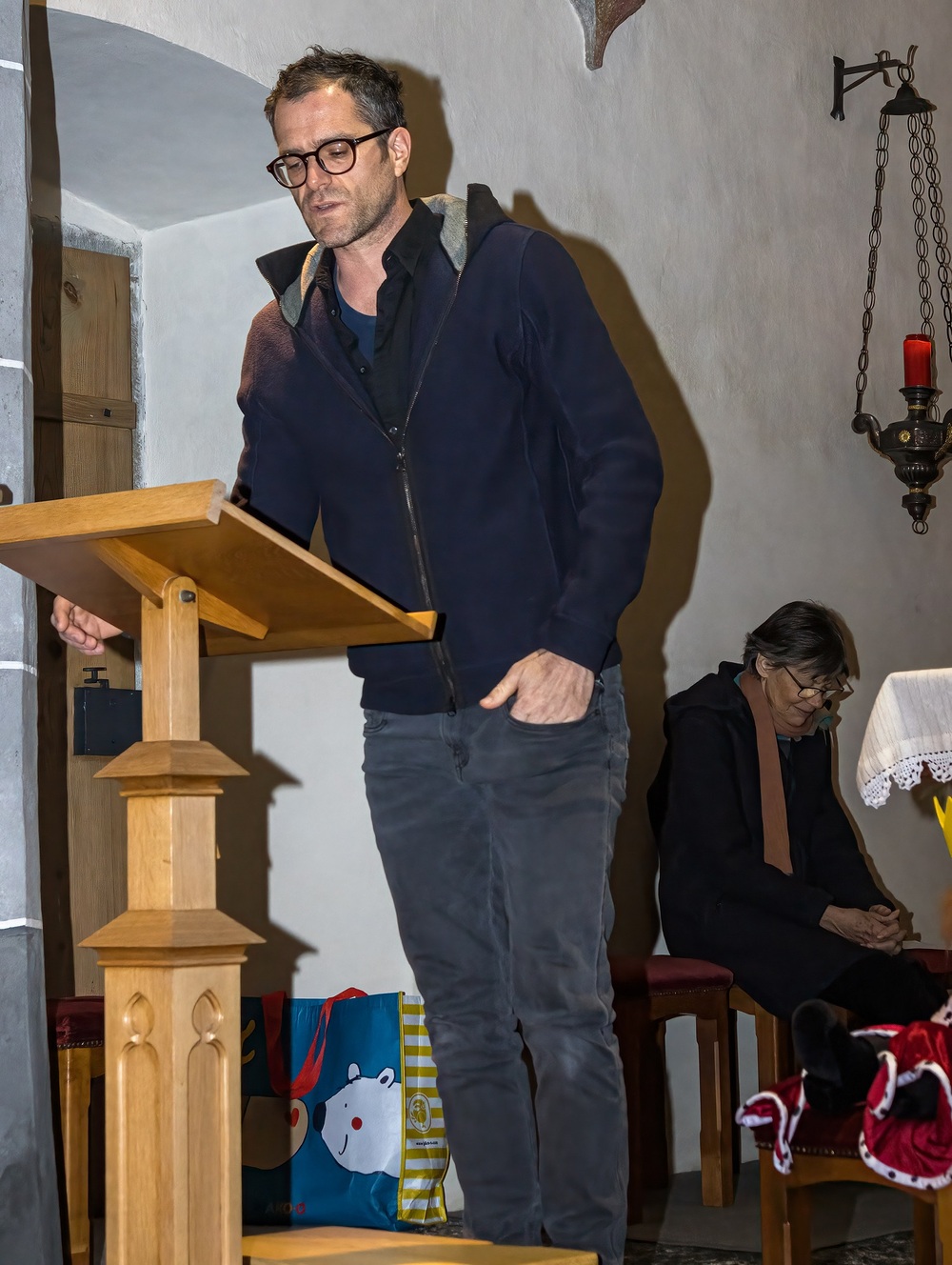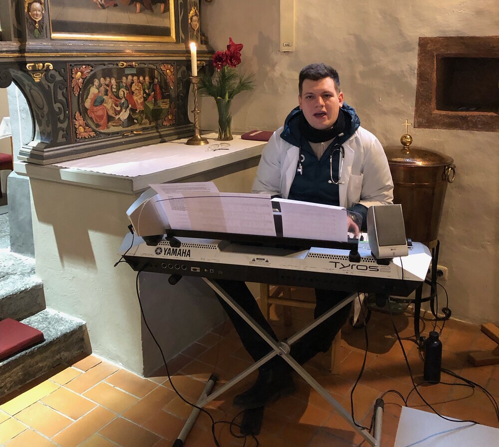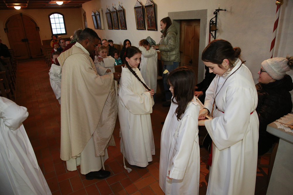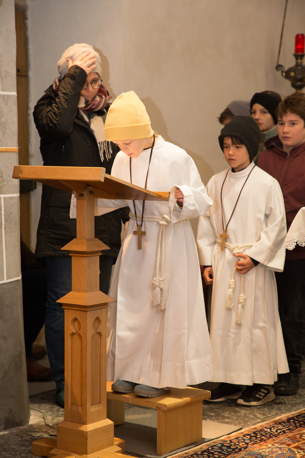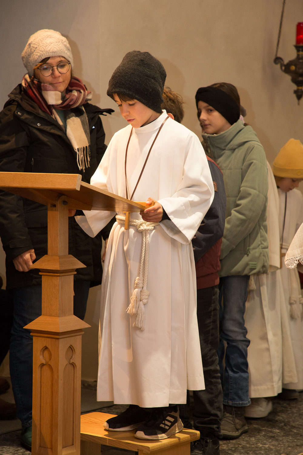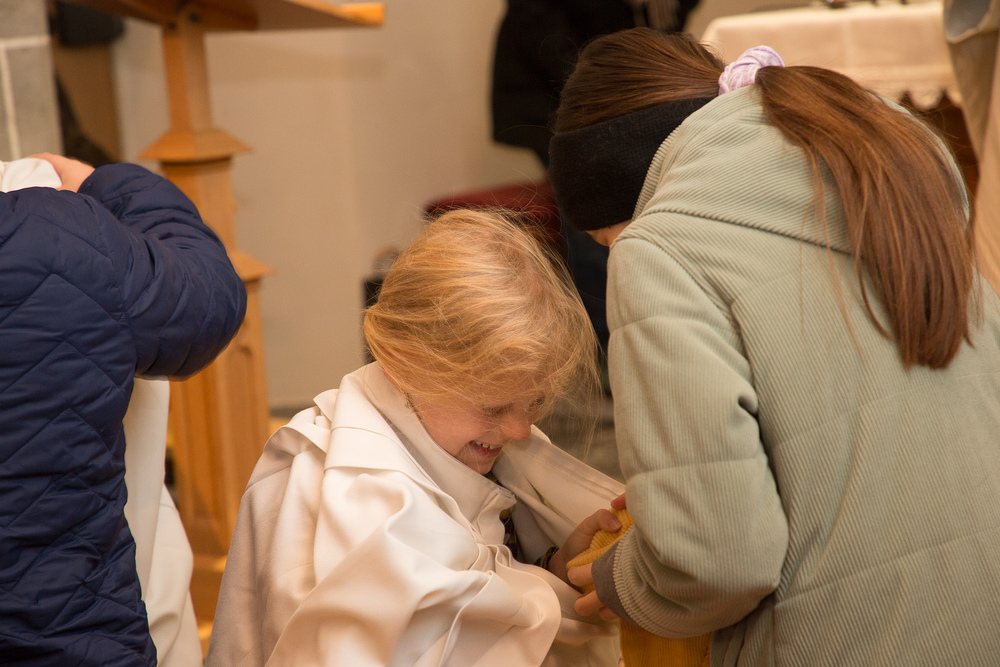 Am 1. Adventsonntag verabschiedete sich Stephan nach 16 Jahren aus dem Ministrantendienst. Angelika bedankte sich im Namen des Mini-Teams sehr herzlich. Den lobenden Worten von Pfarrer Lojin folgte ein großer Applaus der Pfarrfamilie.