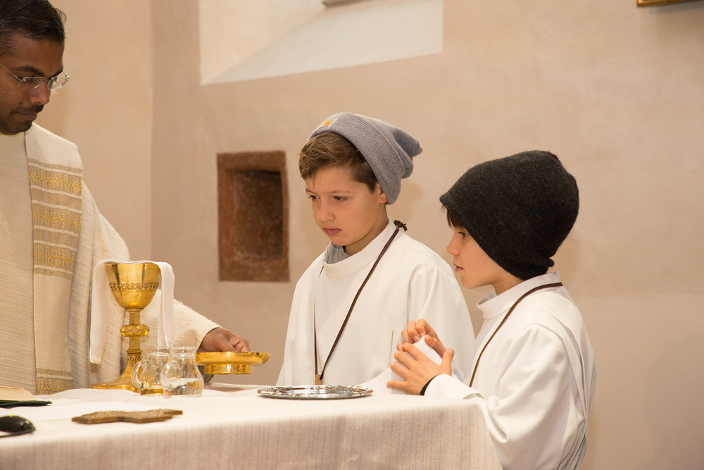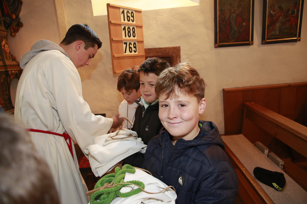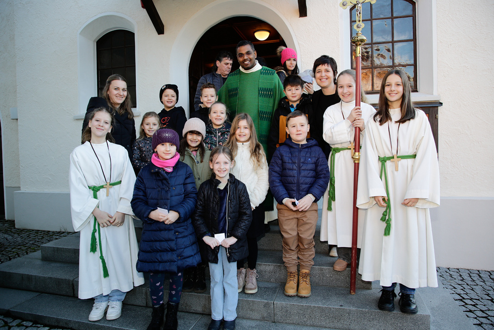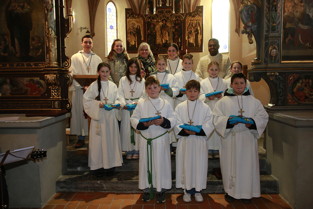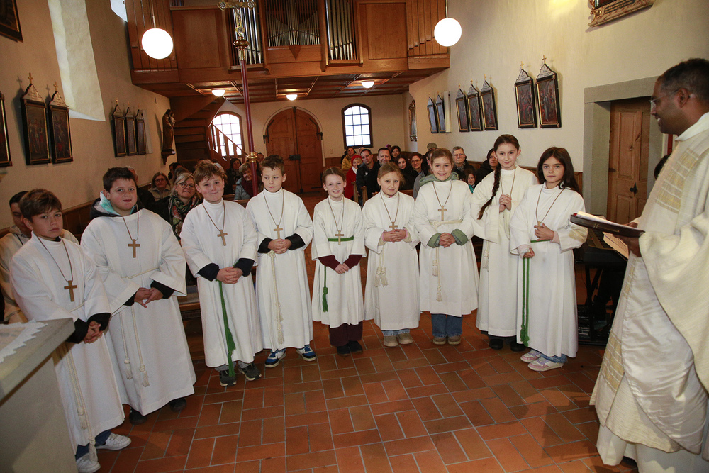 Neun Kinder wurden am Christkönigssonntag in die Ministrantengemeinschaft aufgenommen. Mit Sophia, Anna, Rosa, Linda, Valerie, Adam, Julius, Raphael und Emil freuten sich Pfarrer Lojin und die Rönser Pfarrfamilie.
