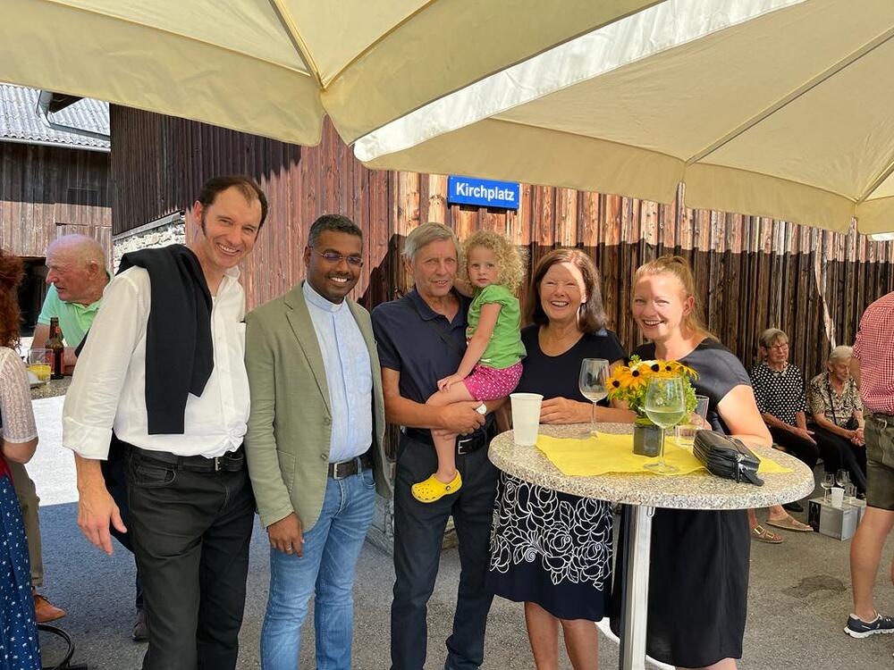 Pfarrer Lojin sprach Reinold großen Dank aus und überreichte ihm und Christl eine Urkunde mit päpstlichem Segen. Die Kirchenräte Wolfgang und Michael überreichten Reinold das Dekret von Bischof Benno und die Verdienstmedaille der Diözese Feldkirch.