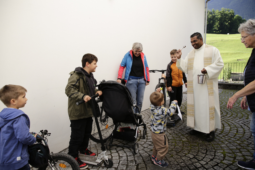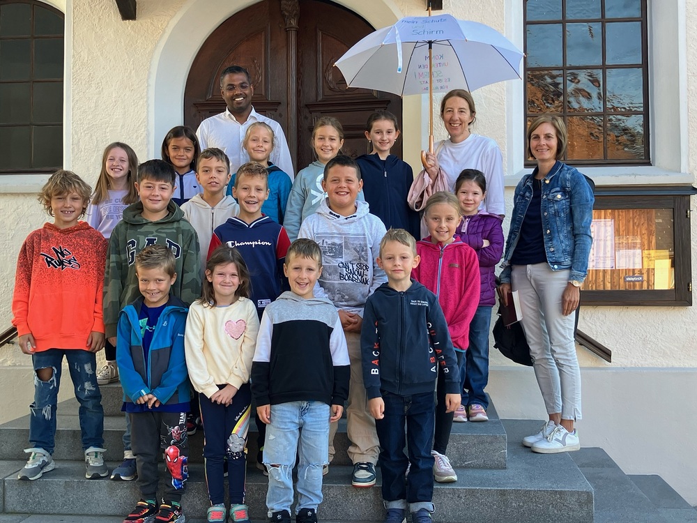 Am 6. Oktober feierte Pfarrer Lojin mit zahlreichen Kindern und Erwachsenen den Erntedankgottesdienst. Im Anschluss lud der OGV Röns zum gemeinsamen Frühstück ins "Schualhüsle" ein.