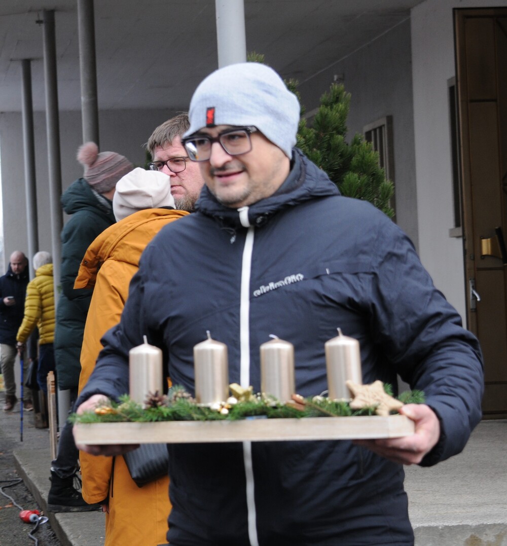 Am Nachmittag waren dann bei der ersten Bresner Adventfeier viele „fleißige Hände“ im Einsatz. Zusammen mit der Funkenzunft wurde für Kinder und Erwachsene ein abwechslungsreiches Programm mit mehreren Stationen geboten. Der Höhepunkt war die Illuminierung des Weihnachtsbaums durch Luisa und Olivia Kaar, der dann in vollem Glanz erstrahlte und den Vorplatz der Kirche in eine stimmungsvolle Atmosphäre hüllte. Bei Punsch, Zuckerwatte, gebrannten Mandeln, heißen Maroni sowie der einen oder anderen gegrillten Wurst gab es genug Gelegenheit für Begegnung und Gespräche.