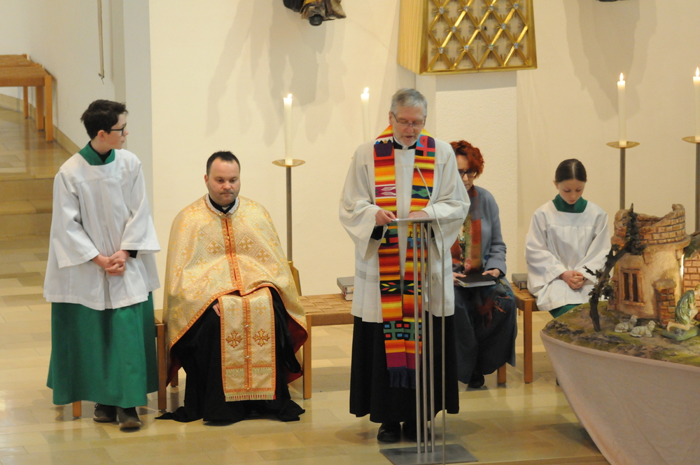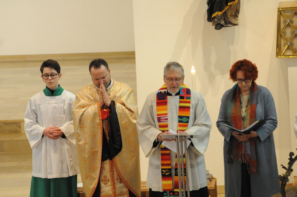 Vikar Edwin Matt, der für die Gesamtorganisation verantwortlich war, konnte für diesen speziellen Anlass am 25. Januar von der evangelischen Kirche Frau Lektorin Magdalena Paulus und von der ukrainisch-griechisch-katholischen Kirche Pfr. Vasyl Demchuk begrüßen. Vikar Matt freute sich besonders, zusammen mit ihnen und mit den christlichen Brüdern und Schwestern auf der ganzen Welt einen ökumenischen Gottesdienst unter dem Titel „LICHT vom LICHT als LICHT“ zu feiern.
