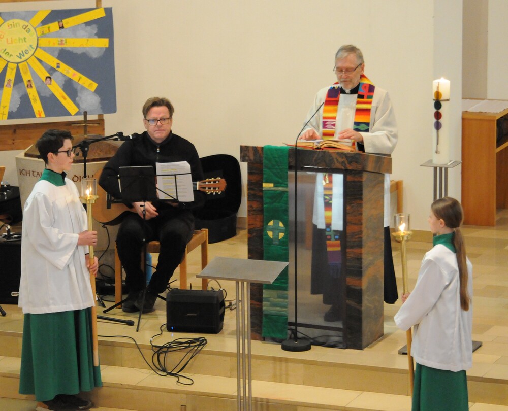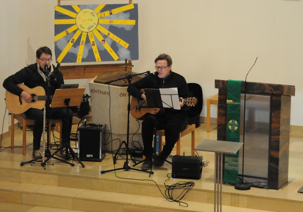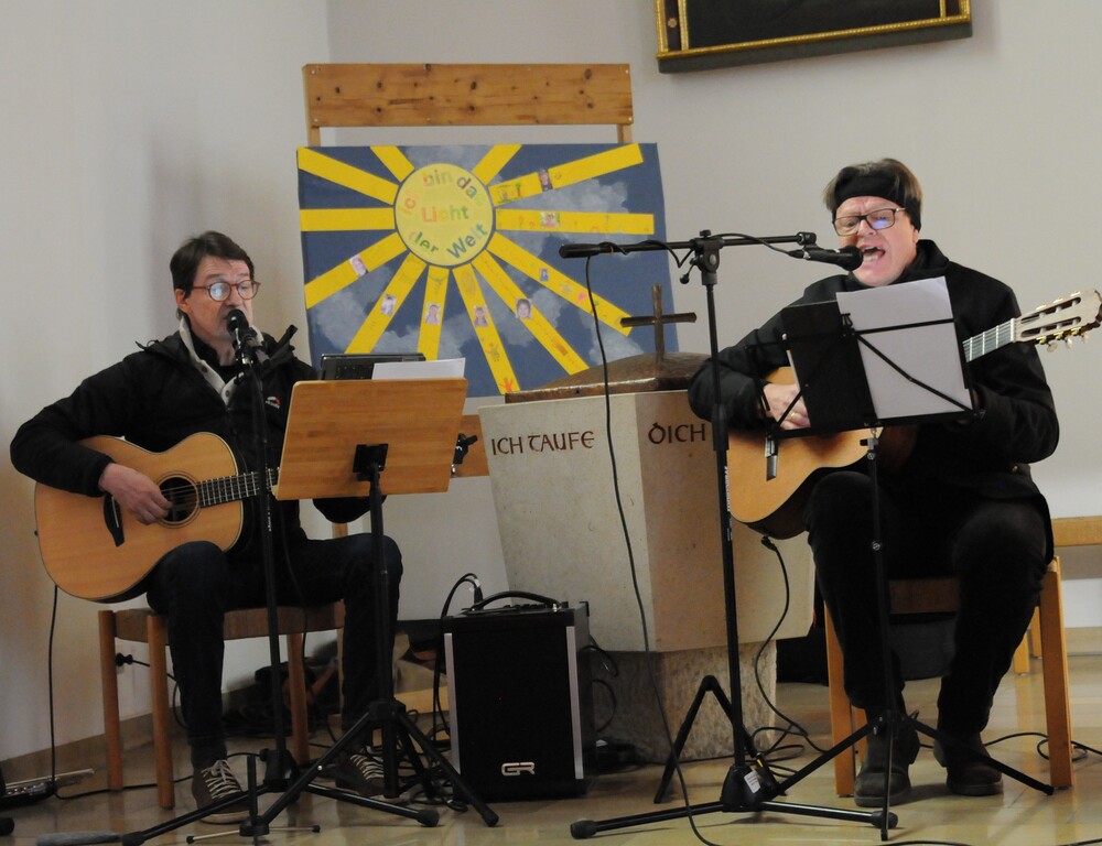 Einen erheblichen Anteil an der Verwirklichung dieser einzigartigen kirchlichen Veranstaltung hatte ein Gesangsduo aus Bregenz mit der Auswahl des Liedgutes, das in Absprache mit Vikar Matt erfolgte. Dieses war wohl überlegt, vielfältig und situationsbezogen der speziellen Bedeutung der Handlung angepasst, womit die ökumenische Verbundenheit untereinander und der Ausdruck eines gemeinsamen Glaubens kundgetan werden konnte. Die beiden Musiker Thomas und Peter zeichneten musikalische Qualität und spürbare Begeisterung aus. Es war eine Freude ihnen zuzuhören. Anerkennung, Begeisterung und Huldigung in Form von langanhaltendem Applaus war die logische Folge.