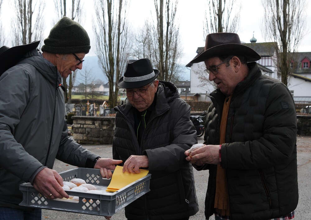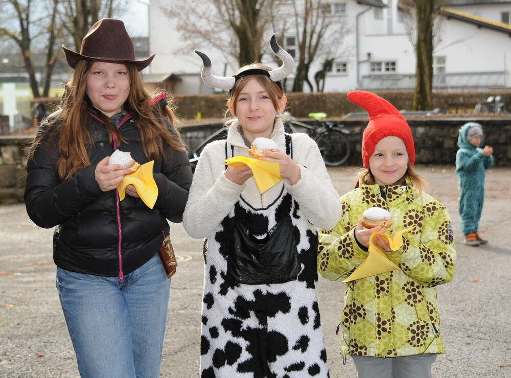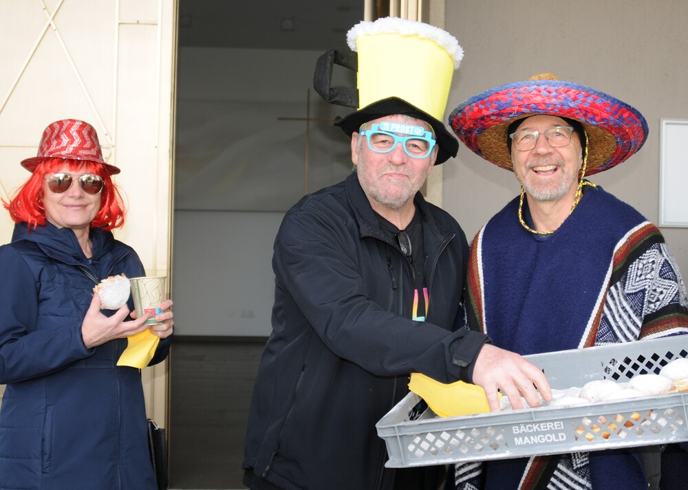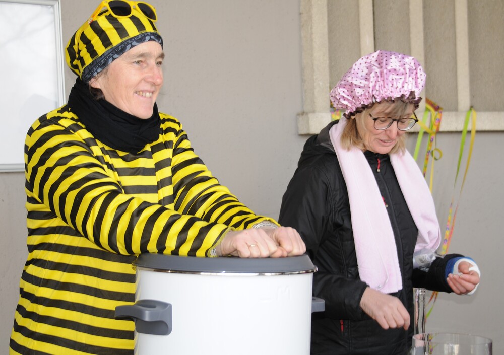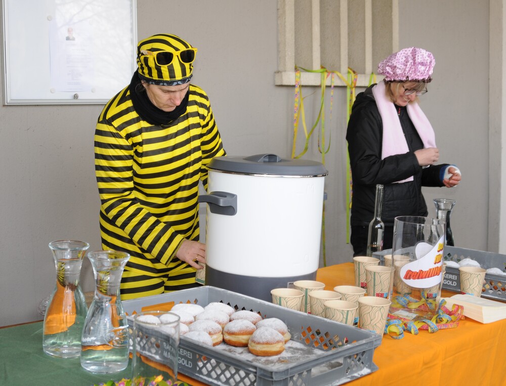 Trotz nasskaltem Wetter war die anschließend auf dem Kirchplatz stattfindende Agape, die den fröhlichen Tag perfekt abrundete, gut besucht. Er war ein Ort des Gesprächs, des Lachens und des gemeinsamen Genießens, wo die Feier weiterlebte und alle in fröhlicher Gemeinschaft zusammenkamen. Doch was wäre ein Fasching ohne die mit Marillenmarmelade gefüllten und mit einer feinen Schicht Puderzucker versehenen Faschingskrapfen, die reißenden Absatz fanden und hervorragend schmeckten. So endete dieser erlebnisreiche Vormittag mit gemeinsamem Genießen, gemeinsamen Gesprächen und fröhlicher Laune.