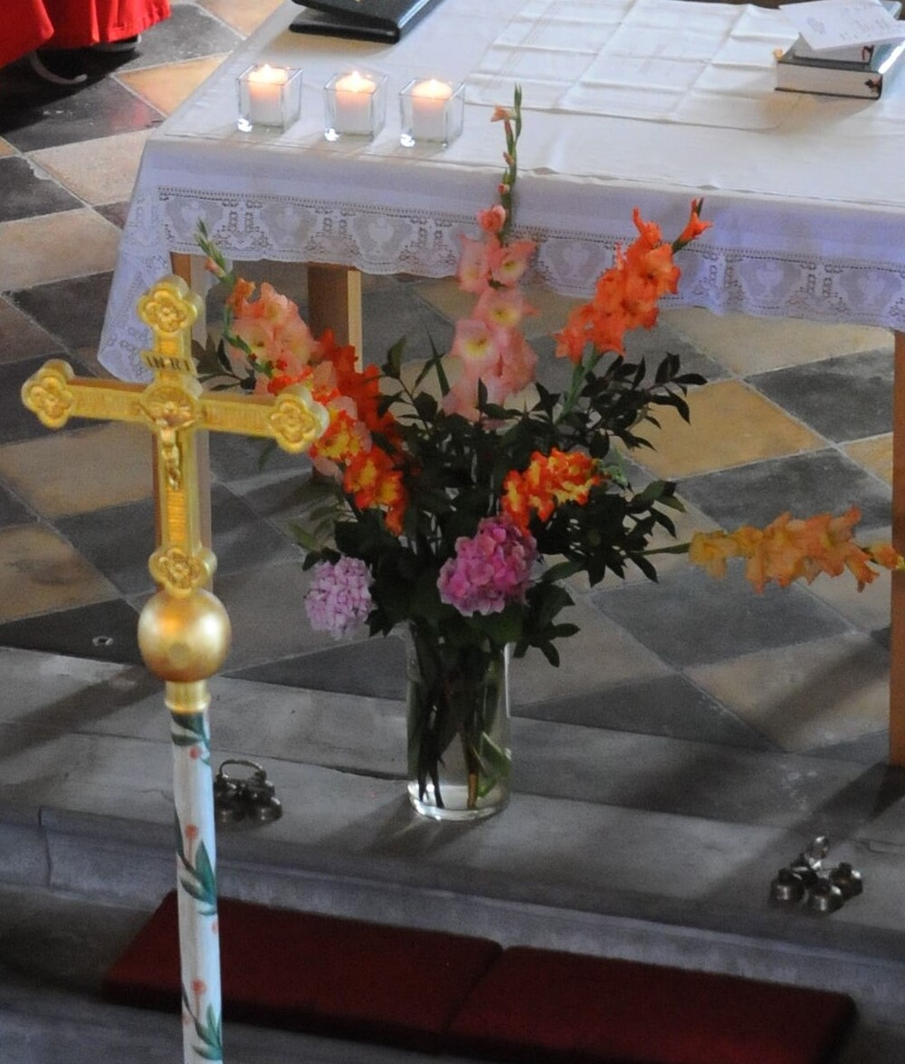 Wie es sich für einen solchen Festtag gehört, war der vordere Abschnitt der Kirche mit den beiden prächtigen Seitenaltären und dem schlichten Volksaltar mit Blumengebinden festlich geschmückt. Mit wenigen dekorativen Elementen gelang es Marlis Böckle vom Kapellenverein St. Anna, wichtige Akzente für das festliche Beisammensein der zahlreichen Kirchenbesucher*innen zu setzen.