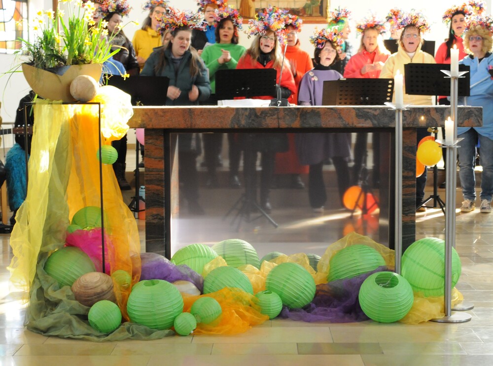- die Dekoration in der Kirche, die das gesamte Farbspektrum widerspiegelte und das Leitmotiv in allen Belangen verkörperte – wieder einmal eine Meisterleistung des Kirchenschmuckteams;