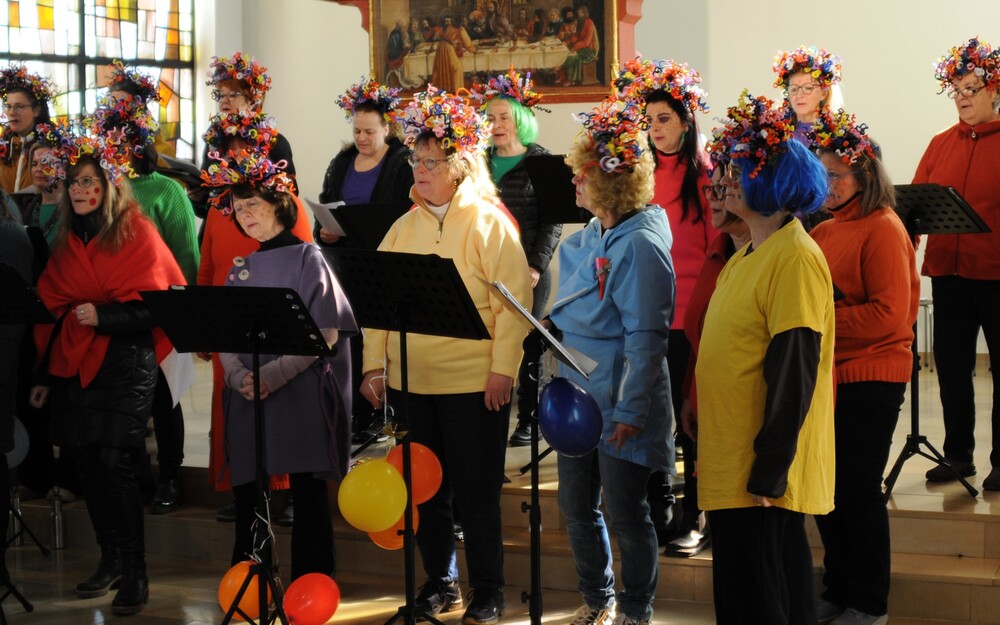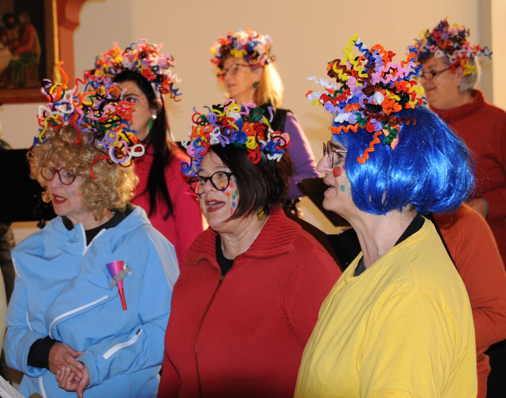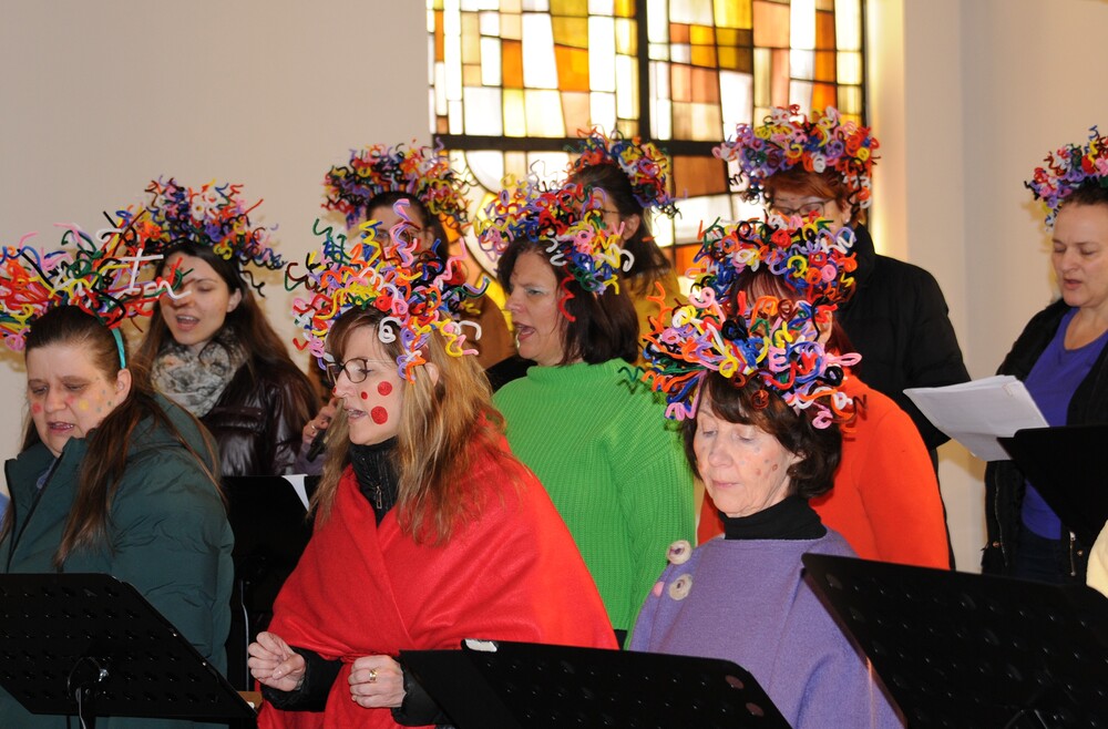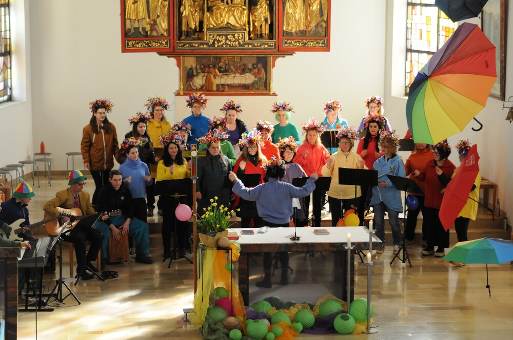 - der Chor imPuls, der unter dem lebhaften, mitreissenden und für die Sängerinnen inspirierenden Dirigat von Simone Amann-Ledetzky, den Mut hatte, einmal anders zu denken und anders zu handeln – als üblich: einerseits waren es die spektakulären Haarprachten und andererseits die mit Fingerspitzengefühl ausgewählten Liedbeiträge, wie z.B. der bekannte Ohrwurm „Oh Happy Day“ von The Edwin Hawkins Singers und das Gesangsstück „Bunt“ von Beatrice Egli. Wobei eine außergewöhnlich große Ausdrucksfähigkeit und gesangstechnische Brillanz den Chor an diesem Tag kennzeichnete. Man konnte die Freude jeder einzelnen Sängerin spüren und diese Freude erfüllte auch das Kirchenvolk mit Kraft und Energie.