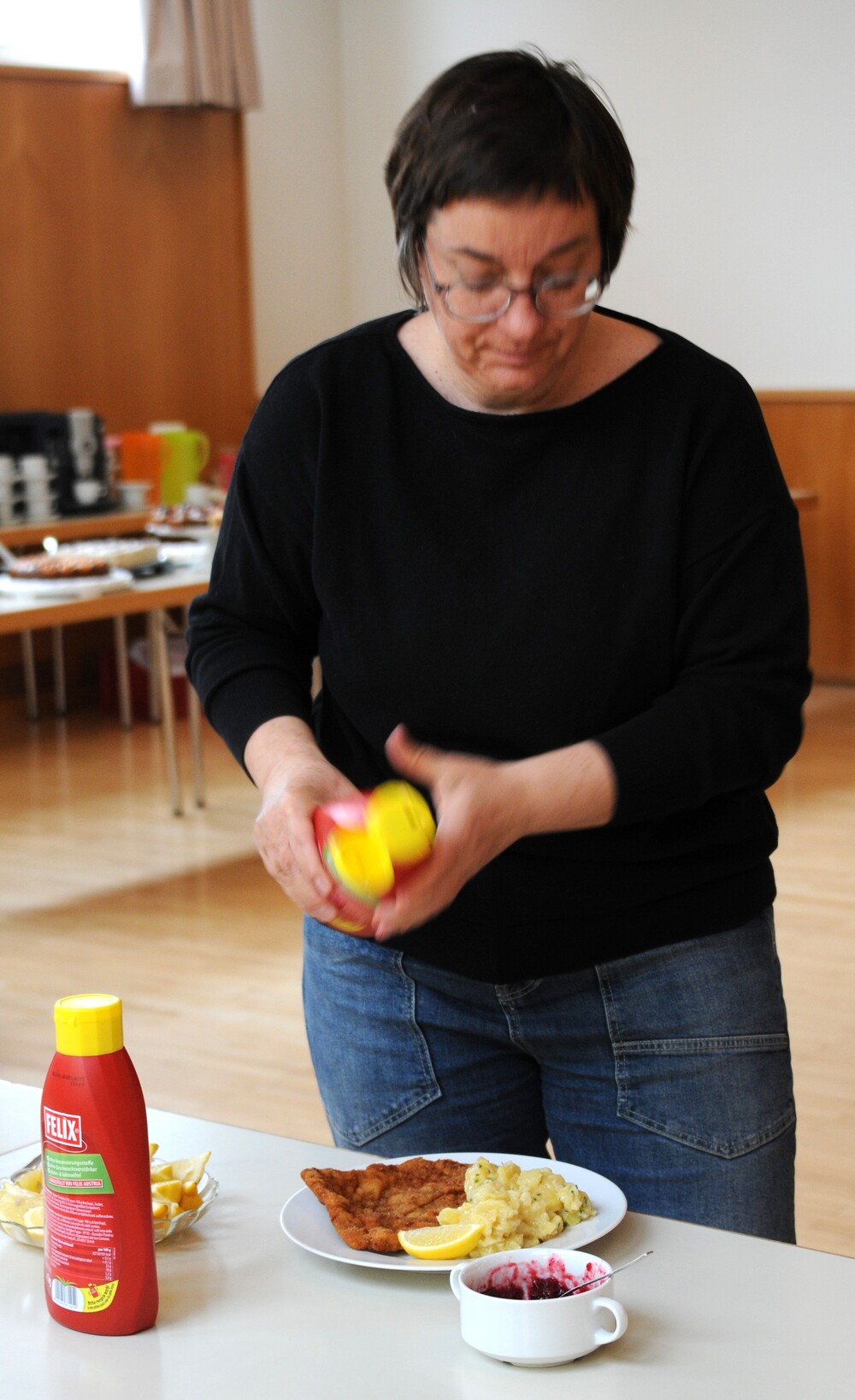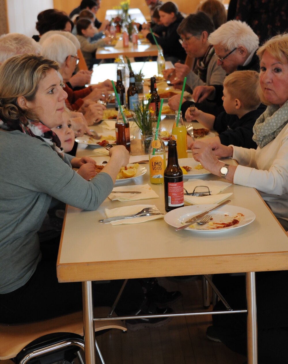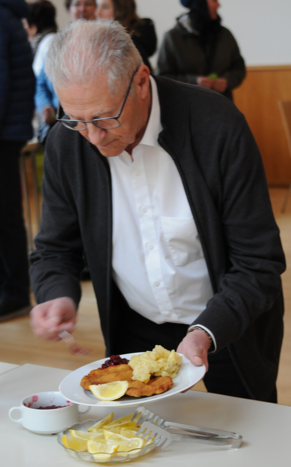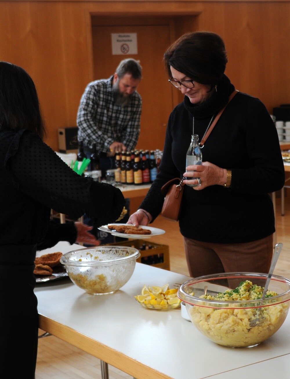 - das anschließende Schnitzelessen im Bresner-Saal mit perfekter Bewirtung.