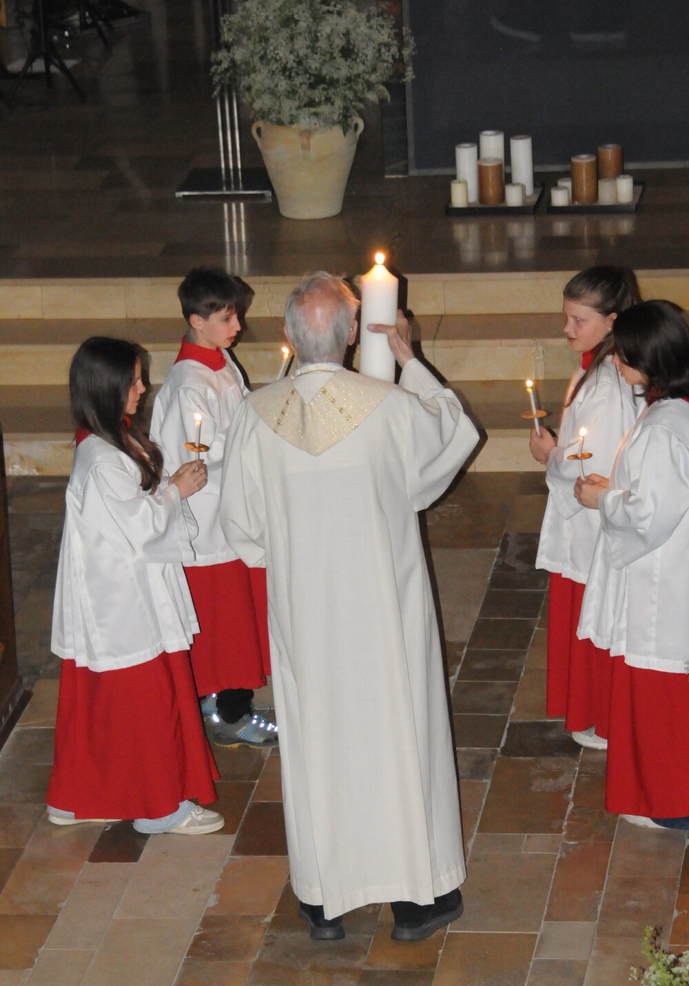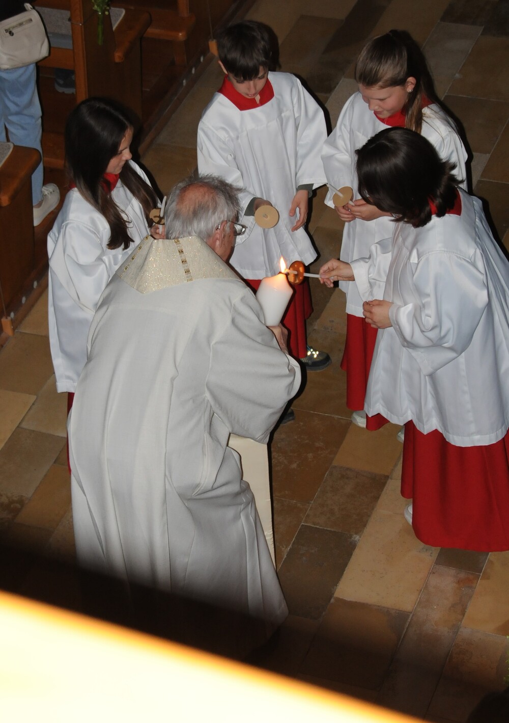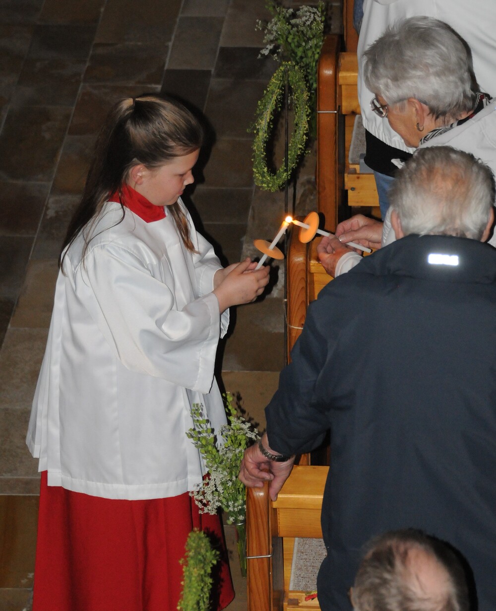 - Osternacht und Auferstehungsfeier, verbunden mit der Weihe des Osterfeuers, Osterwassers und der Osterkerze.
