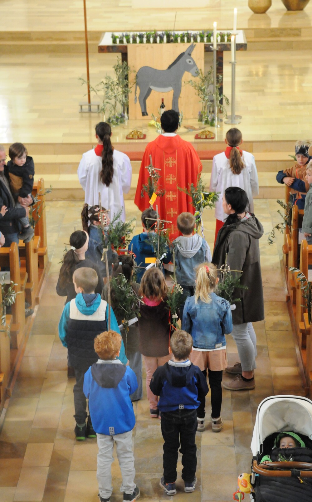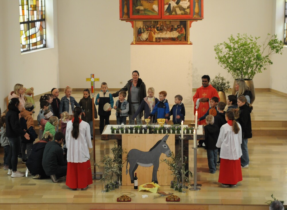 - Palmenweihe am Palmsonntag und Familienmesse, musikalisch begleitet von einem Kinderchörle unter der Leitung von Martina Hertnagel;