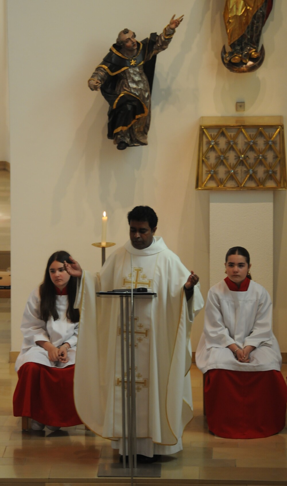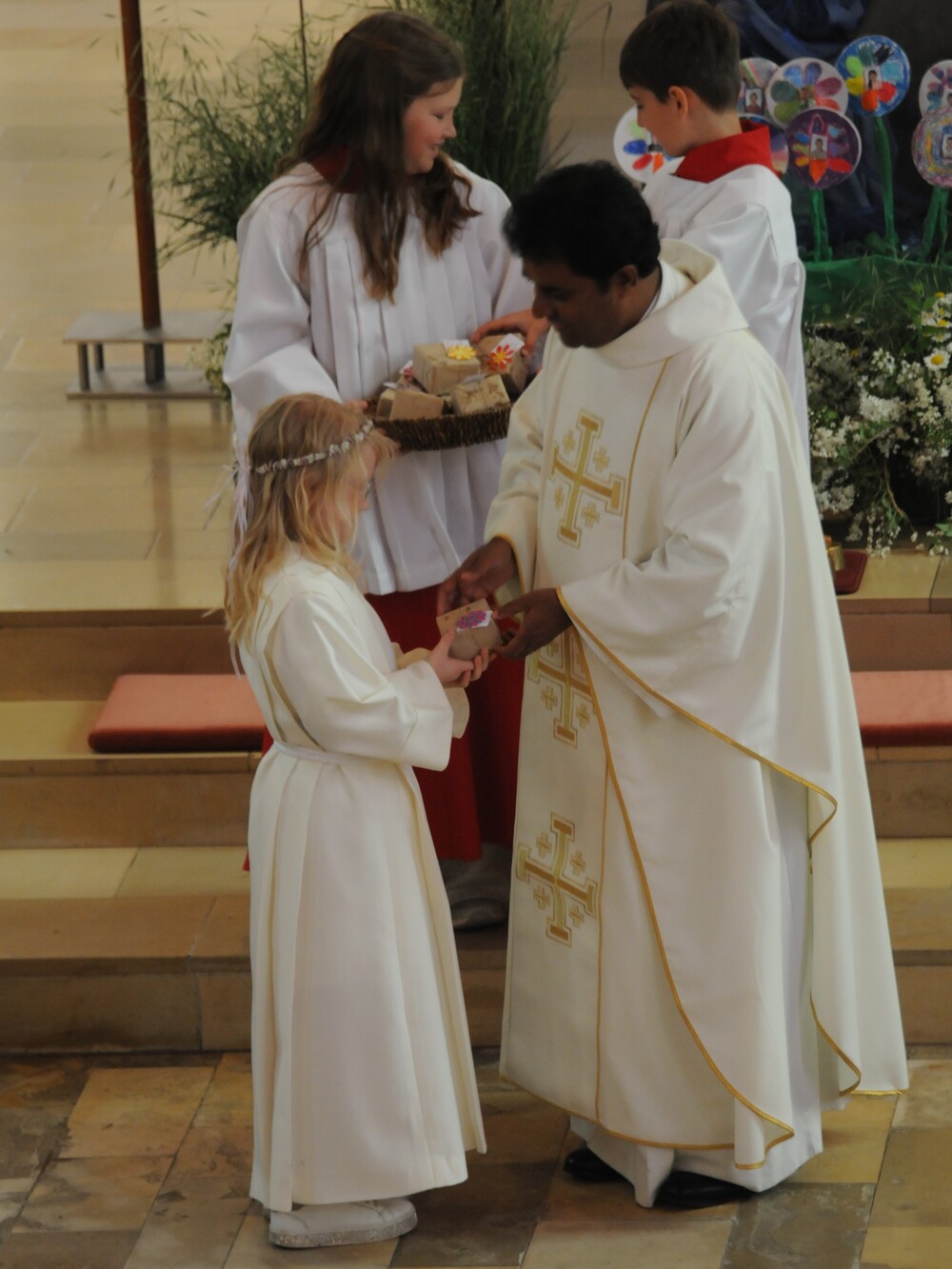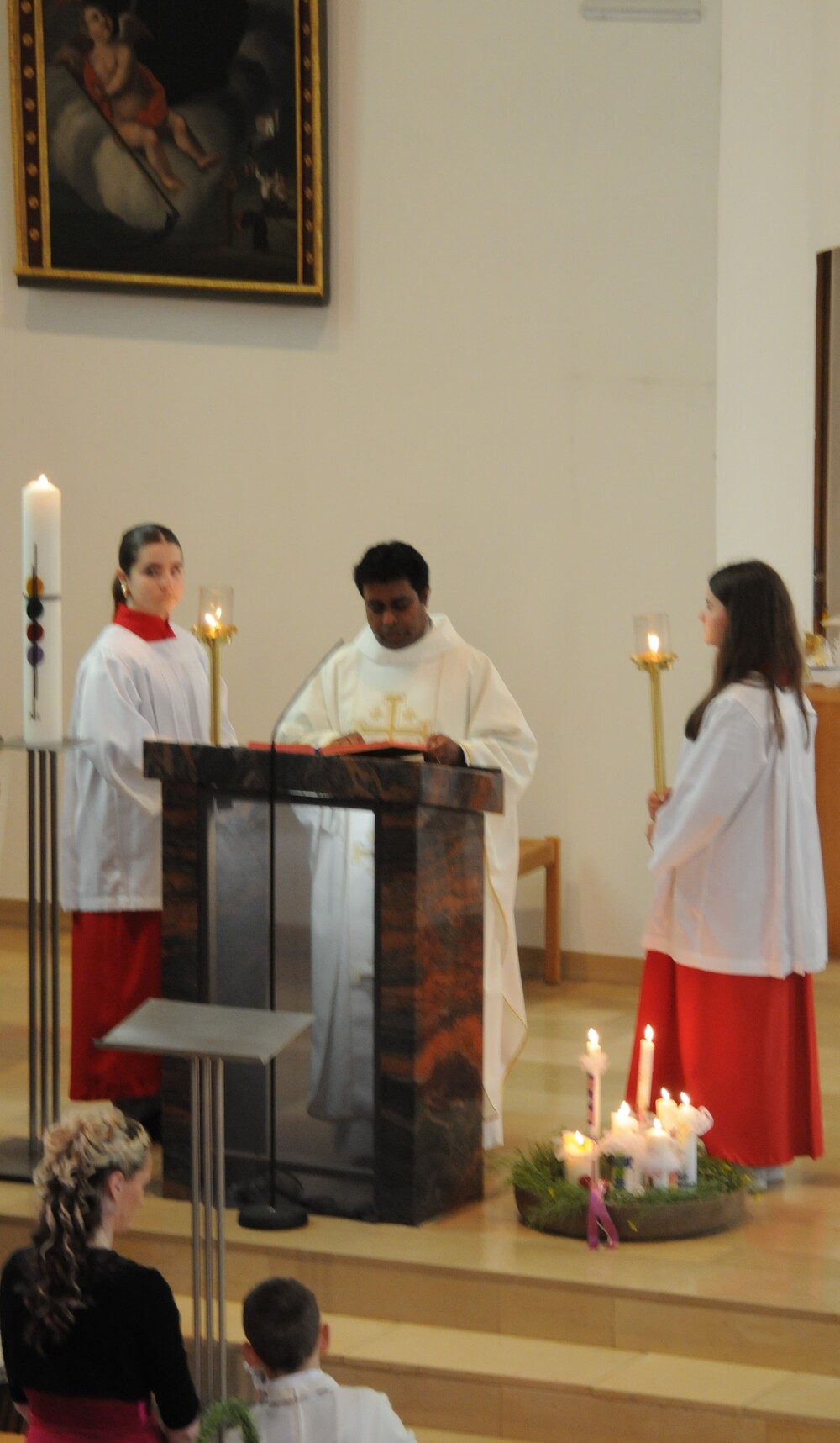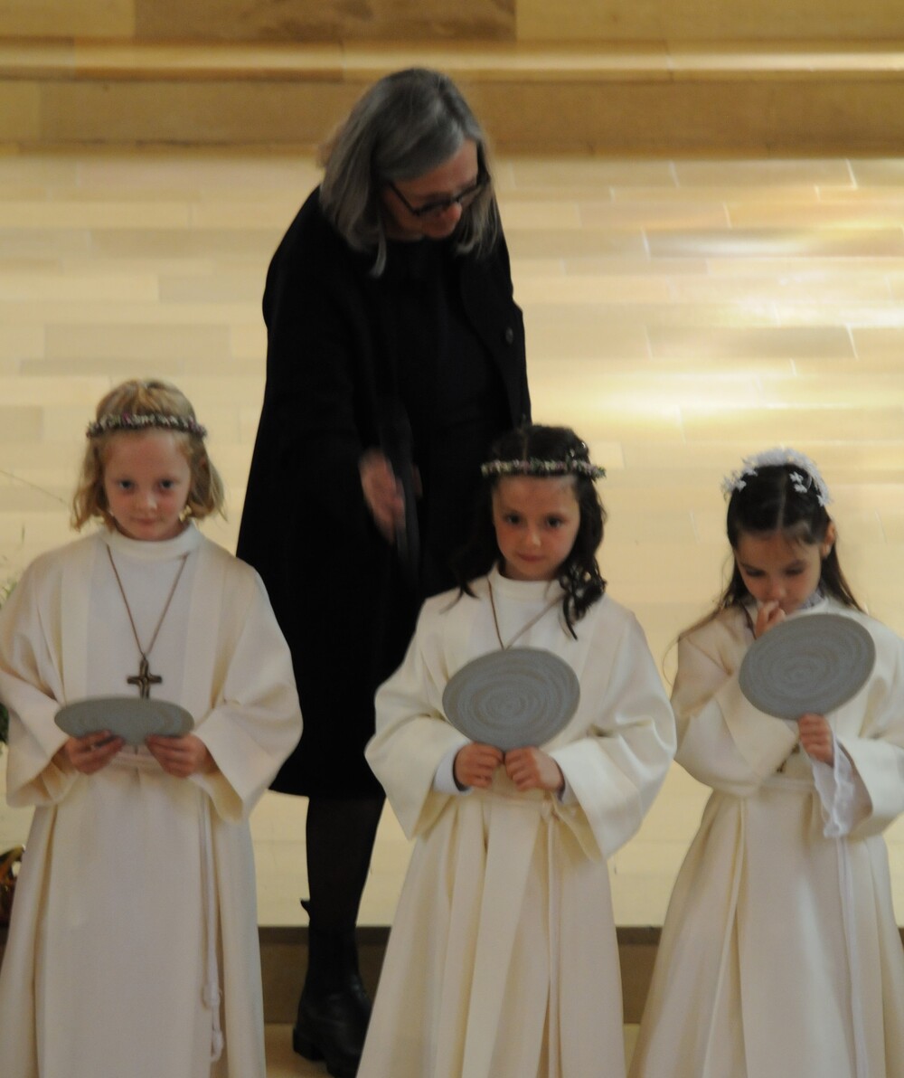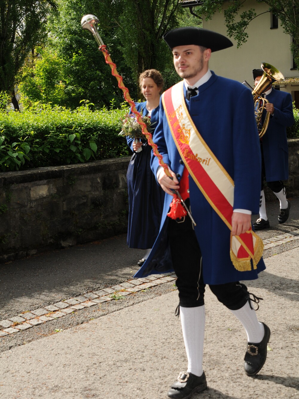 Die „kleinen Festgäste“ versammelten sich am Schulplatz und wurden dort von Pfarrer Noby Acharuparambil begrüßt. Angeführt von der Bürgermusik Rankweil zogen sie dann zusammen mit der Ministrantenschar, dem Priester und dem Planungsteam (RL Barbara Halbeisen, Manuela Kinz-Marte, Andrea Tiefenthaler) mit flotter Marschmusik von der Volksschule zur Kirche, in der Familie, Paten und Patinnen sowie Verwandte und Freunde bereits auf sie warteten.
