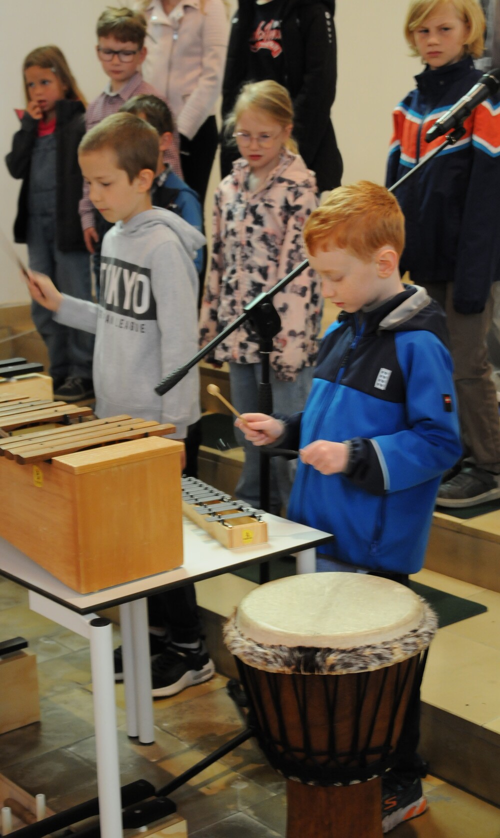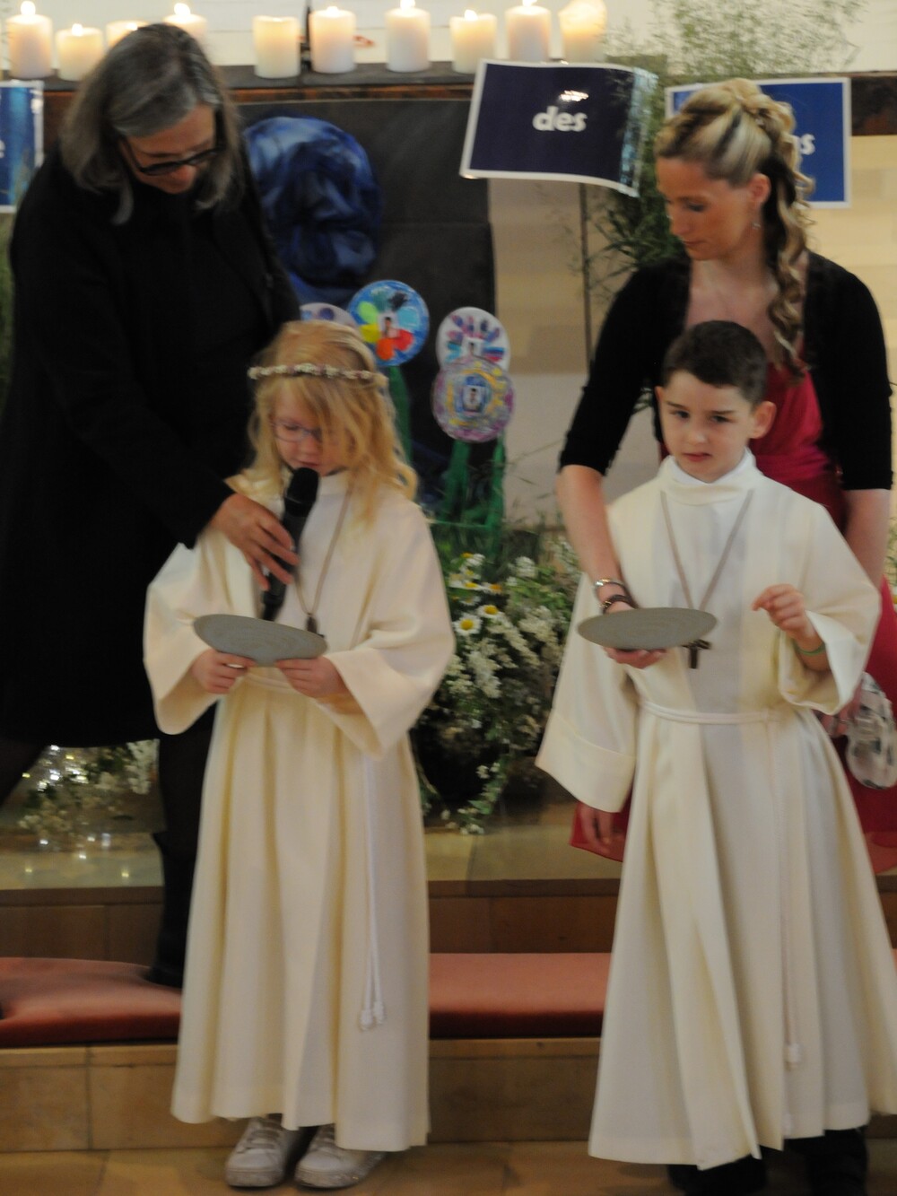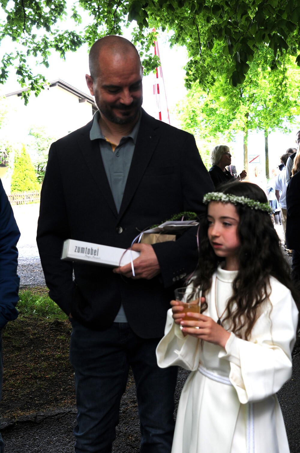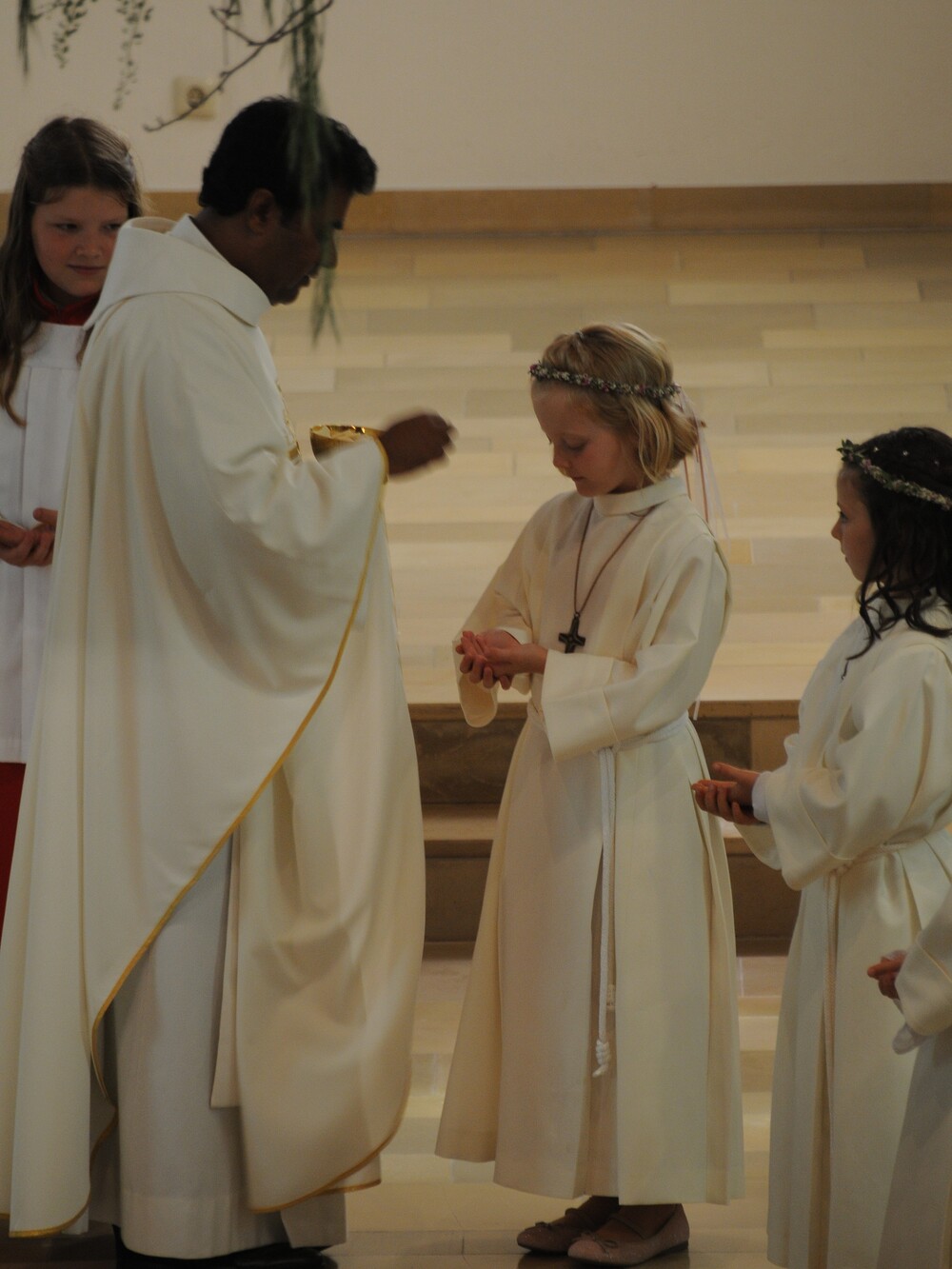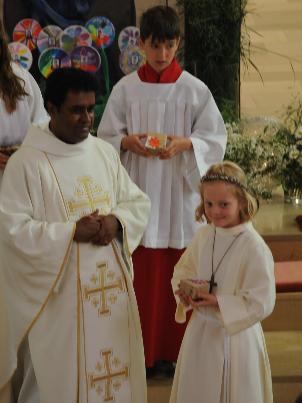 Die „kleinen Festgäste“ versammelten sich am Schulplatz und wurden dort von Pfarrer Noby Acharuparambil begrüßt. Angeführt von der Bürgermusik Rankweil zogen sie dann zusammen mit der Ministrantenschar, dem Priester und dem Planungsteam (RL Barbara Halbeisen, Manuela Kinz-Marte, Andrea Tiefenthaler) mit flotter Marschmusik von der Volksschule zur Kirche, in der Familie, Paten und Patinnen sowie Verwandte und Freunde bereits auf sie warteten.