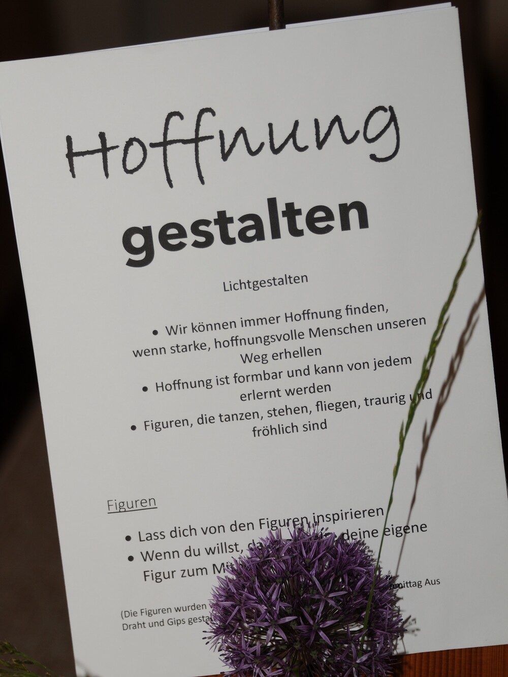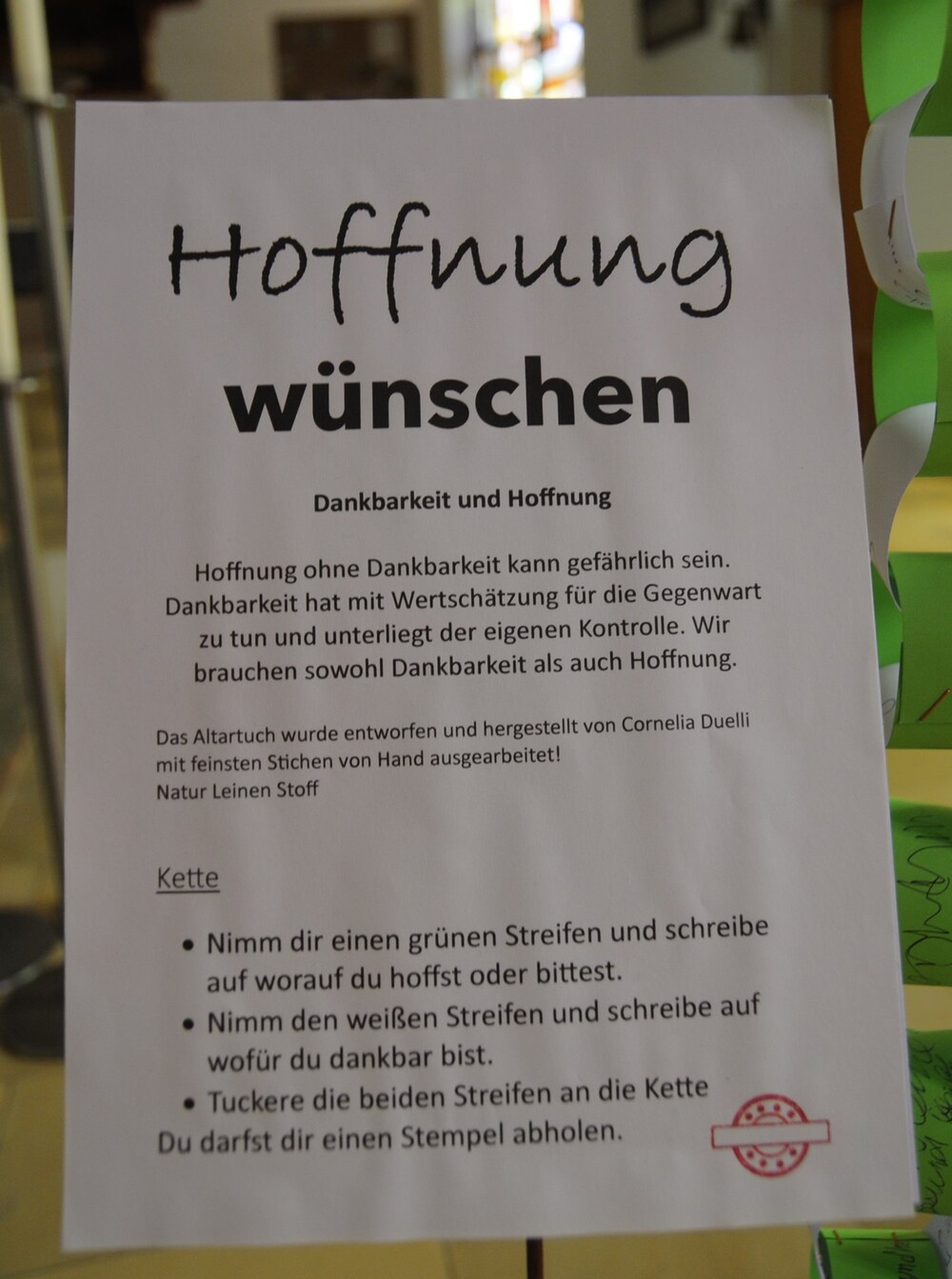 Das Familienmesse-Team nahm sich der Thematik an und erstellte ein 3-stufiges Programm, das sich mit dem Thema HOFFNUNG auseinandersetzte: