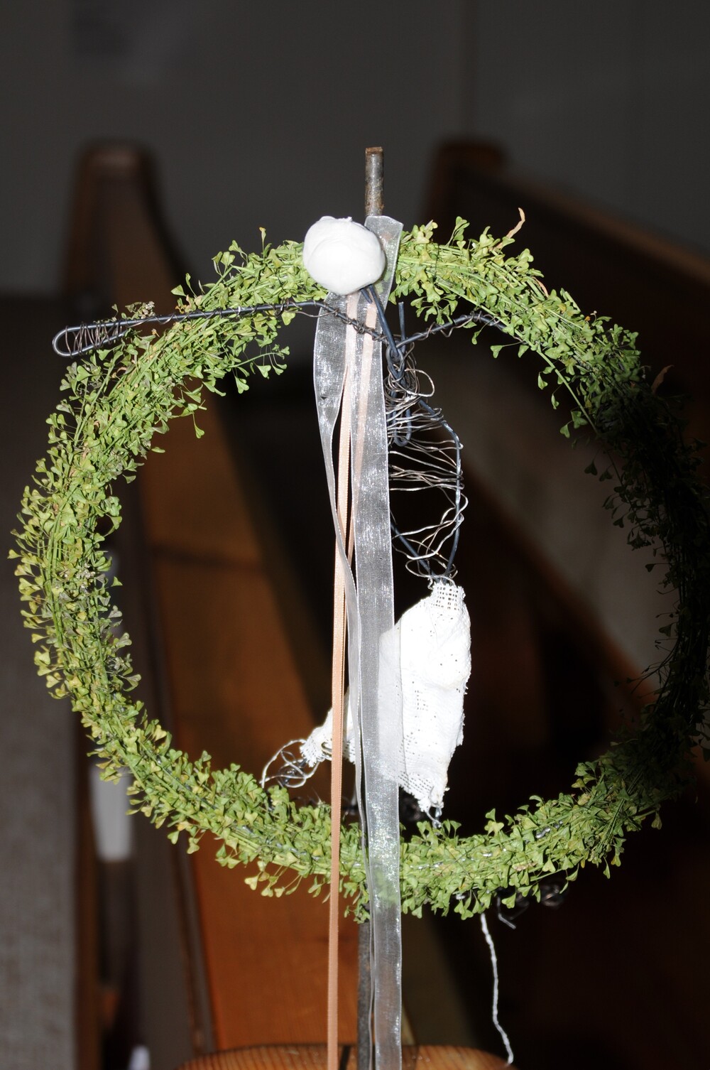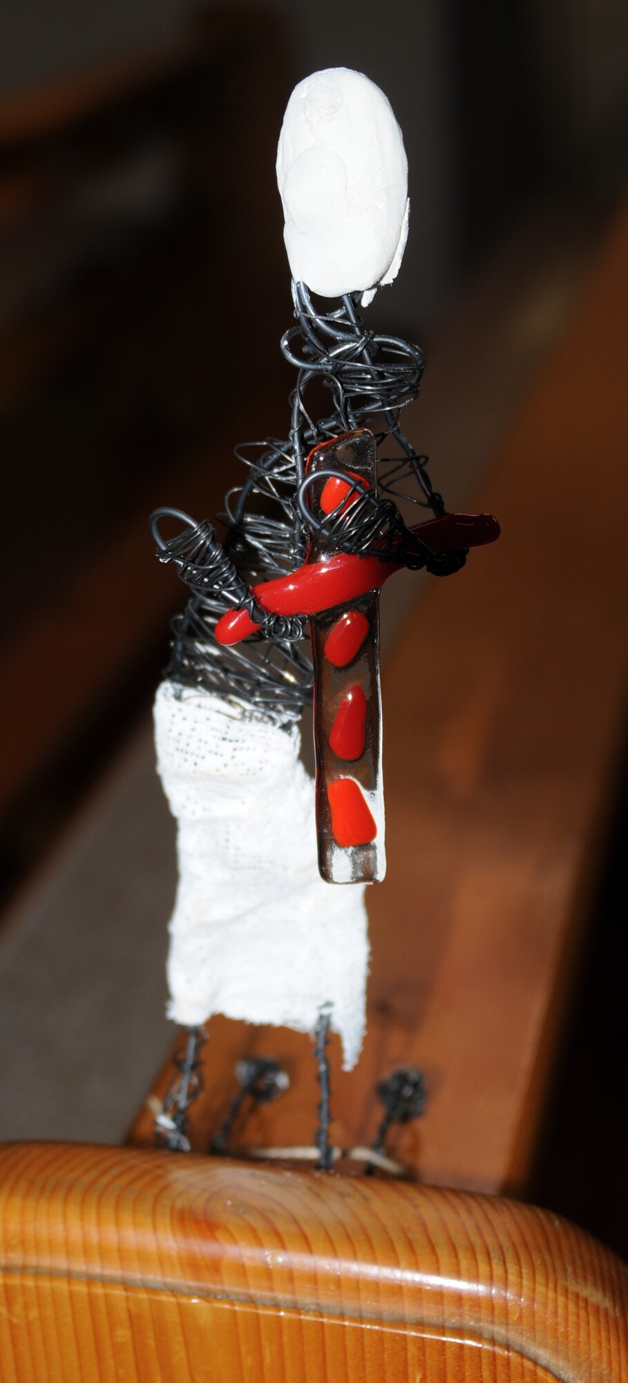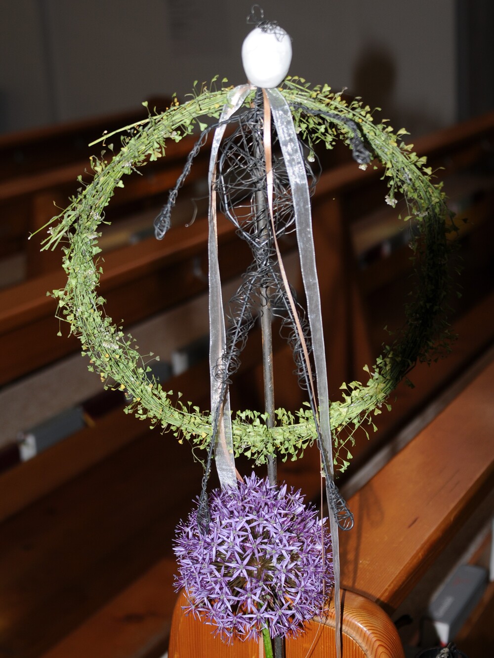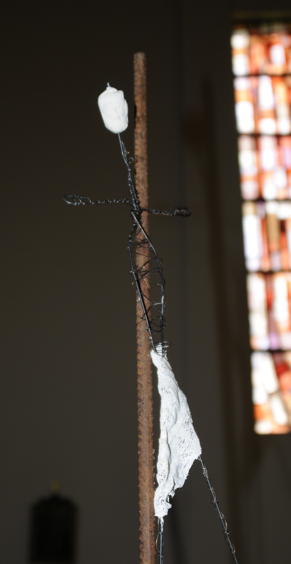 - die bei einem Eusebia-Nachmittag von den Kindern gestalteten filigranen Drahtgebilde, die jedes für sich einen Bezug zur Leidensgeschichte Jesu erahnen lässt oder