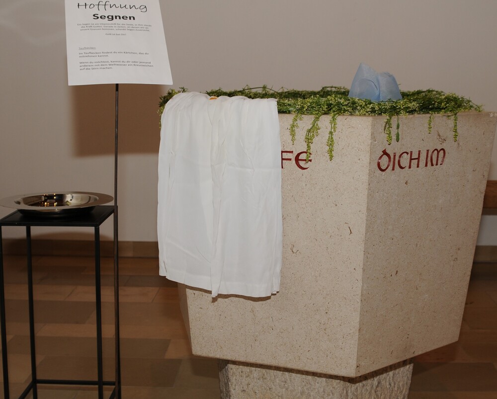Erwähnt werden muss im Außenbereich der „Weg der Sinne“, gestaltet von Familie Schöckenbacher, der dazu einlädt, weiterhin achtsam zu sein, die Sinne zu öffnen, in die "Tiefe zu gehen", und den Weg bewusst wahr zu nehmen. Der Barfußweg bleibt Bestandteil des Friedhofs und kann jederzeit begangen werden.