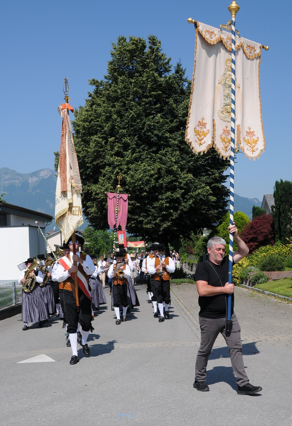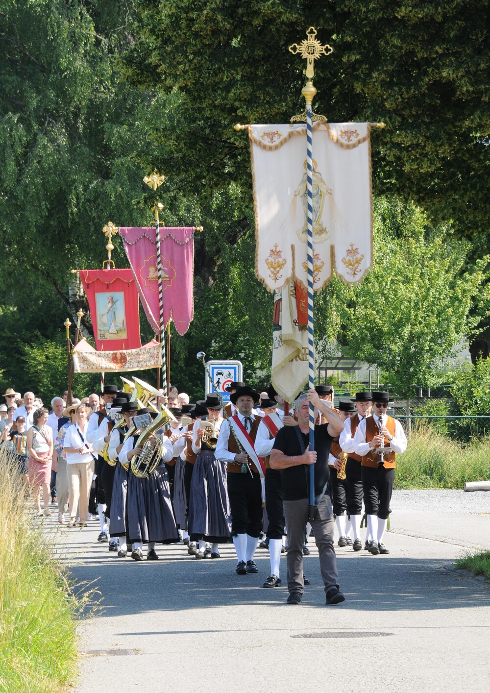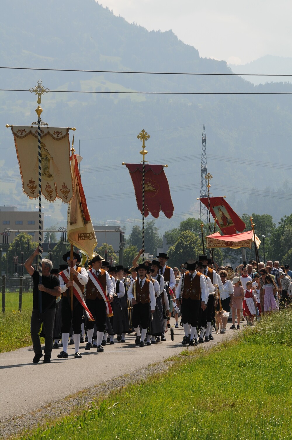 Dem Prozessionszug gehörten an der Musikverein Harmonie Meiningen mit Bürgermeister Gerd Fleisch als Kapellmeister, drei Fahnenträger, Ministrantenschar, Priester, Vertreter des Chores imPuls, Erstkommunion-Kinder welche die Blumenblätter streuten und Kirchgänger*innen.