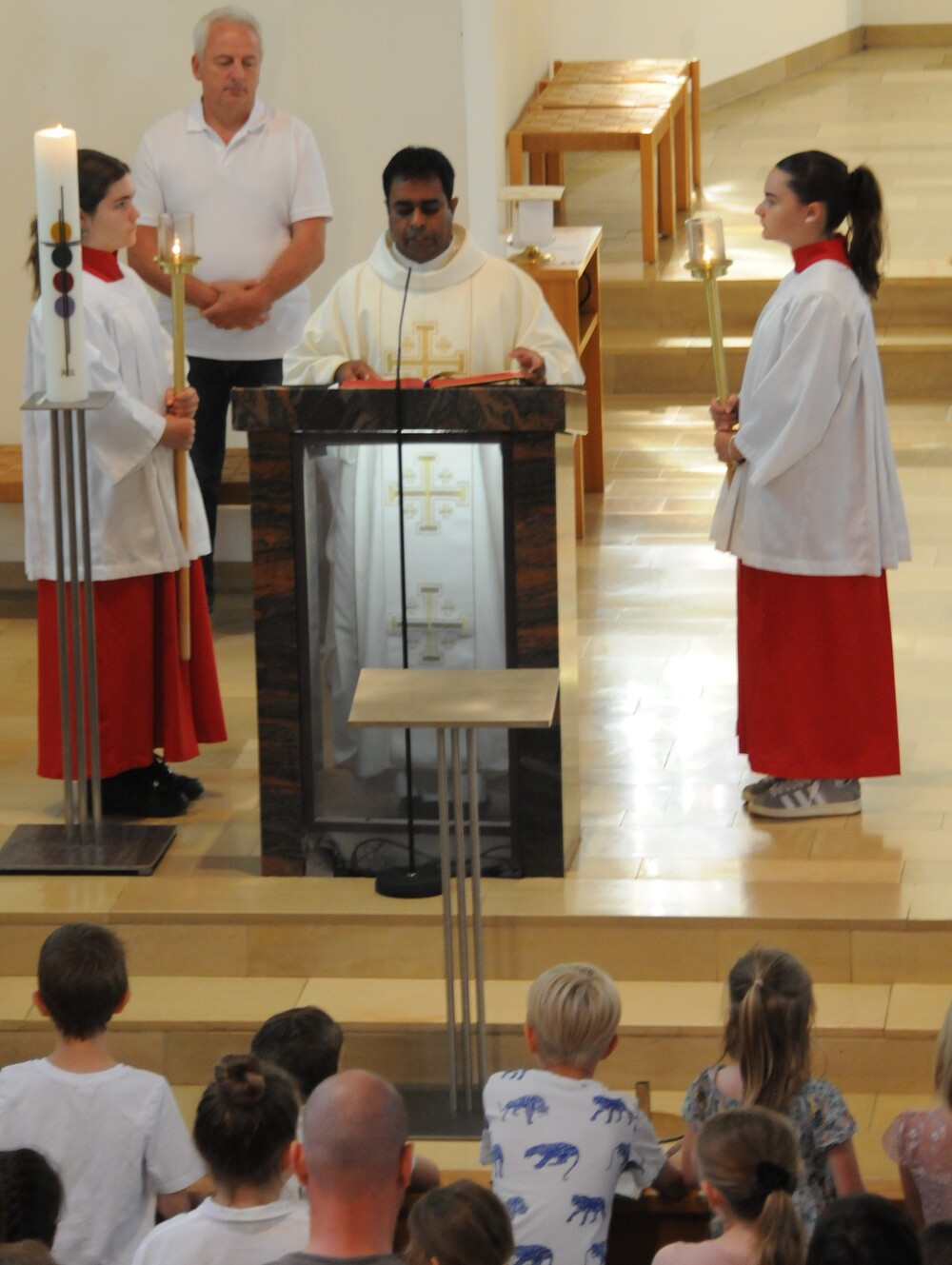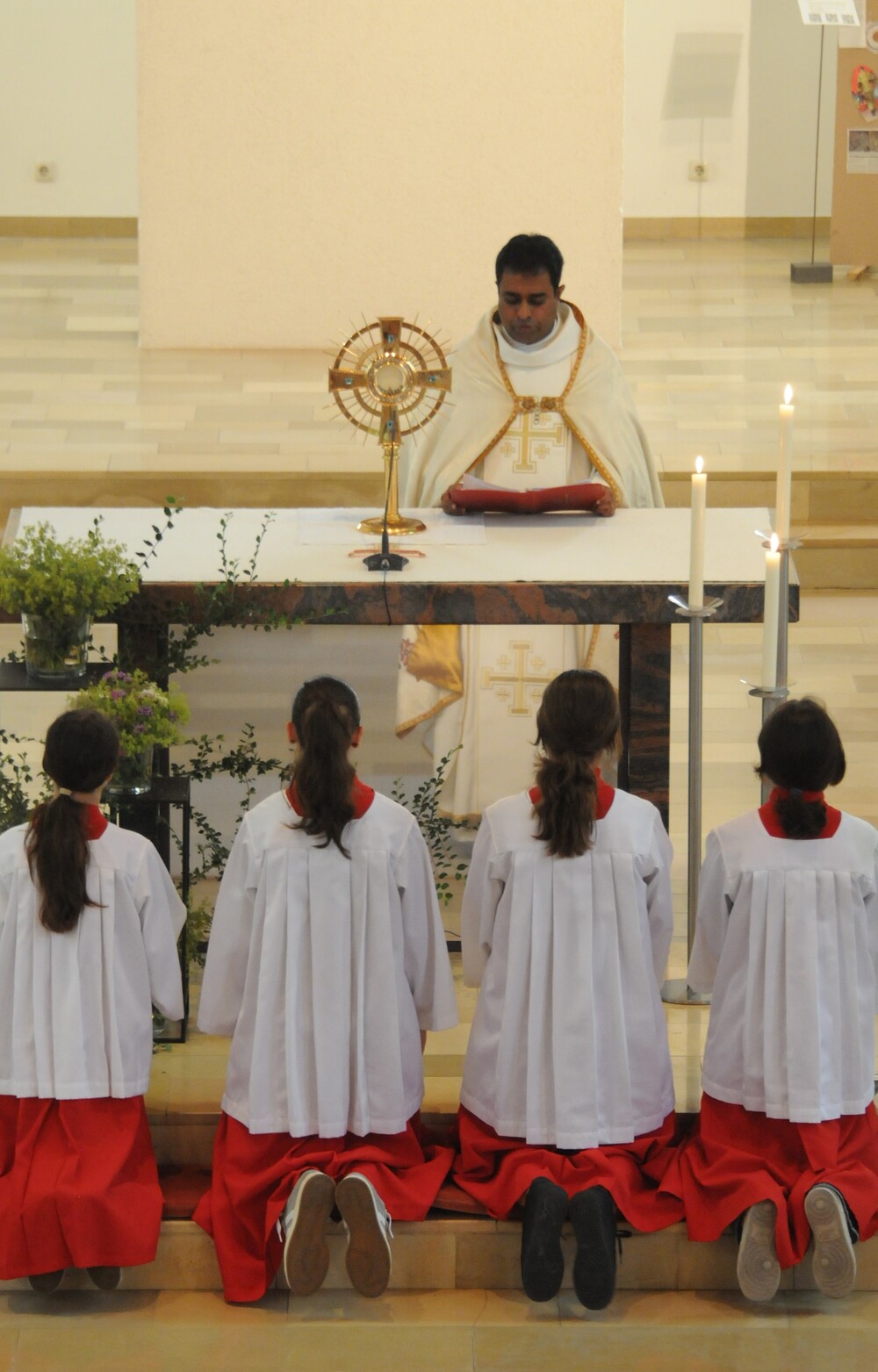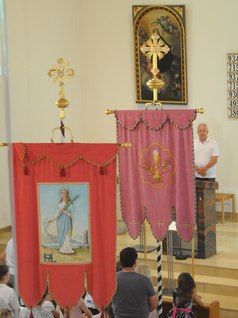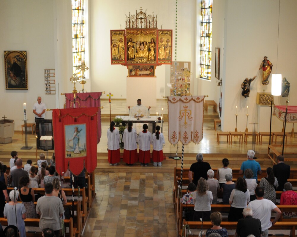 Beendet wurde die Fronleichnamsprozession wieder in der Kirche. Nach dem Te Deum und dem eucharistischen Segen fand Pfarrer Noby bewegende Worte des Dankes für alle jene, die gekommen waren, mitgefeiert sowie mitgewirkt und so zum Gelingen des gut organisierten Festes einen Beitrag geleistet haben. DANKE!