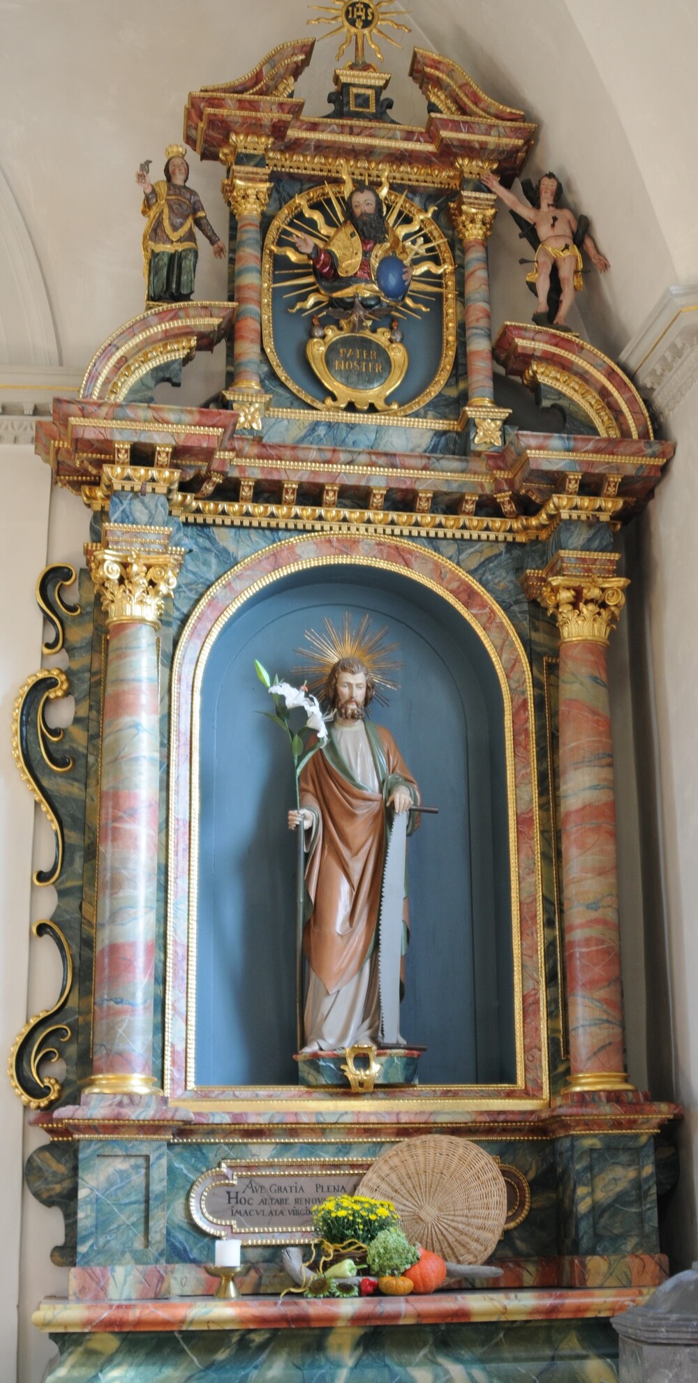 Der Abend begann mit einer Besichtigung der Kirche St. Agatha in der Nachbargemeinde Meiningen. Nach den offiziellen Begrüßungsworten durch die PGR-Obfrau Mag. Margot Insam-Gstach und Pfr. Noby erläuterte im Anschluss Frau Margit Krismer, bei der Führung durch die Kirche, die Besonderheiten des Sakralbaus. Anhand von Eckdaten konkretisierte sie das „WERDEN“ der Kirche bis in die heutige Zeit und widmete sich dann der Ausstattung dieses kleinen barocken „Juwels“.