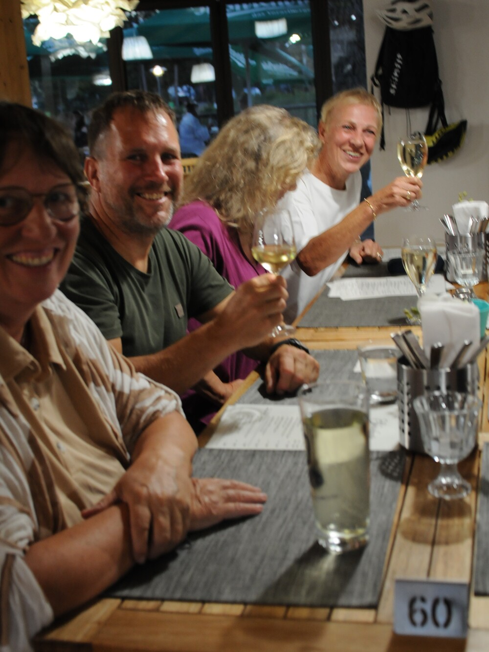 Anschließend liesen sich alle mit den auserlesenen Speisen von der gutbürgerlichen Küche des Hauses verwöhnen. Ob es sich um vegetarische Gerichte, Fischgerichte aus dem hauseigenen Fischteich, diverse Schnitzel, hausgemachten Kartoffelsalat oder andere „Gustostückerl“ handelte, alles war vorzüglich und schmackhaft zubereitet. Dazu ein kühles Getränk und als Nachspeise ein Eis von der verlockenden Eiskarte oder einen aromatischen Kaffee.