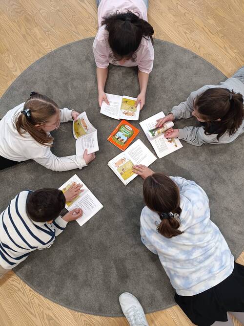In gemütlichen Leseecken auf bunten Sitzkissen machen es sich die Kinder bequem und schlagen die erste Seite von Janoschs Buch „Oh, wie schön ist Panama“ auf. Es wird ruhiger im Raum, Seite für Seite folgen sie der Geschichte vom kleinen Bären und dem kleinen Tiger, die sich auf die Suche nach dem Land ihrer Träume machen. Sie wollen dorthin, wo alles besser sein soll: nach Panama. Der Weg führt die beiden Freunde über Flüsse und durch Wälder, bis sie erkennen, dass das Glück oft näher ist als gedacht.