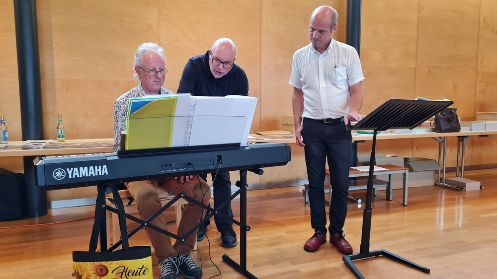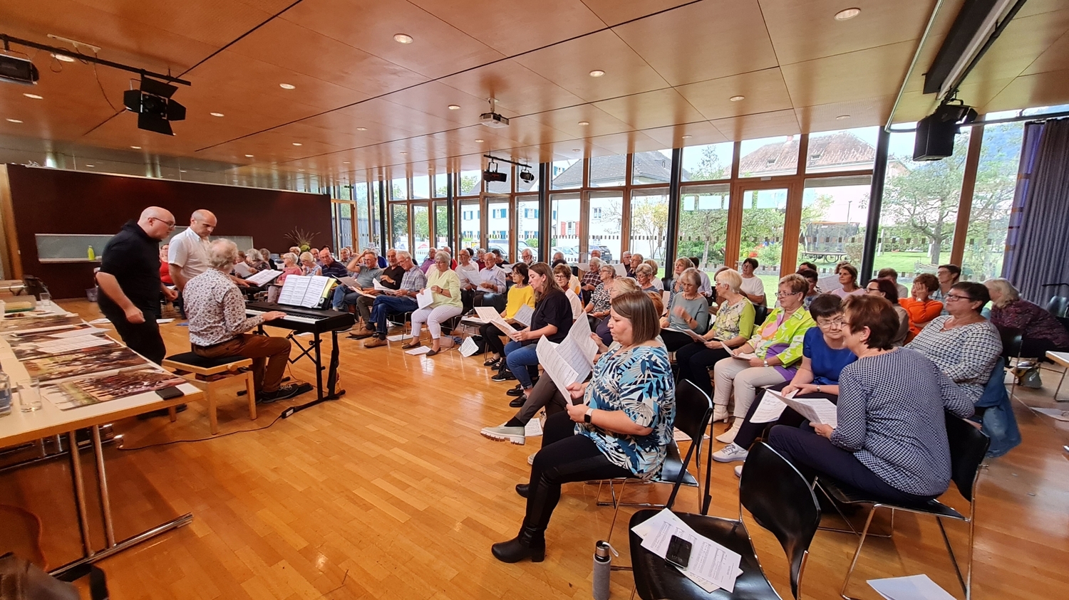 Bereits um 9 Uhr starteten die Sängerinnen und Sänger voller Elan in einen intensiven Probentag und erarbeiteten bis zum Vorabend-Gottesdienst die „Missa Sancti Mauritii“ sowie weitere Stücke des deutschen Komponisten und Kirchenmusikers Stefan Trenner, der persönlich anwesend war und die Probe gemeinsam mit Matthias Ammann leitete. Zusammen mit der perfekten Begleitung am Piano durch Kirchenmusikreferent und Organist Bernhard Loss wurde die Uraufführung des Werkes in der Pfarrkirche Nenzing zu einem bleibenden Erlebnis für alle Anwesenden.