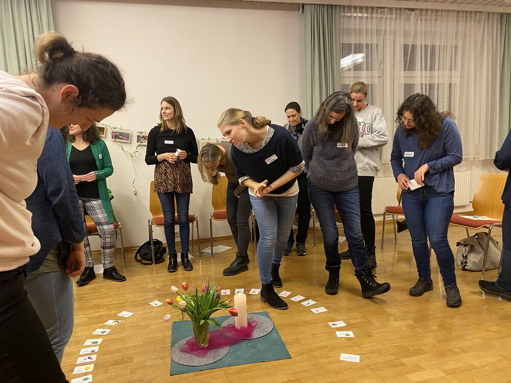 In der „Elternbildungszentrale“ im Pfarrheim Dornbirn Hatlerdorf treffen sich drei Mal im Jahr Gruppenleiterinnen: unter ihnen viele, die den Purzelbaum Lehrgang erst kürzlich im Herbst abgeschlossen haben und auch solche, die schon länger Teil unserer Purzelbaum-Familie sind.