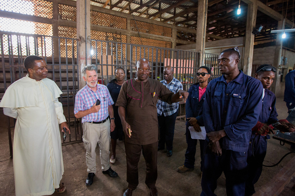 Als er im Jahr 2000 im Alter von 62 Jahren seinen Ruhestand antrat, war er dennoch nicht müde, sich weiterhin für junge Menschen einzusetzen. Auf Bitten seines langjährigen Priesterfreundes Obiora Ike aus Nigeria half er in der Stadt Enugu ein Berufsausbildungszentrum für benachteiligte junge Frauen und Männer aufzubauen. Zunächst plante Hugo Ölz, das Projekt drei Jahre zu begleiten. Schritt für Schritt entwickelte sich aber das Berufsausbildungszentrum „Olu Aka Di mma – Vocational Technical Training Centre“ am Stadtrand von Enugu zu einer Anlaufstelle für junge Menschen. In über 20 Jahren war Hugo Ölz gemeinsam mit seiner Frau Marianne Ölz und seinem Team rund 75 Mal vor Ort. Hunderte Frauen und Männer erfuhren in diesem Berufsausbildungszentrum bereits Hilfe zu Selbsthilfe, indem sie handwerkliche Berufe erlernten. Ölz Mission war es, jungen Menschen in die Zukunft zu helfen. Dabei war ihm stets wichtig, den Schülerinnen und Schülern in Nigeria einen praxisnahen Unterricht zu ermöglichen. So entstanden über die Jahre über 25 handwerkliche Projekte in Nigeria, bei denen die jungen Menschen unter anderem eine Schule in einem abgelegenen Dorf bauten oder das Dach für eine große Kirche errichteten. Hugo Ölz hat die jungen Menschen in Enugu überzeugt, dass eine 2-jährige handwerkliche Ausbildung genau das Richtige ist, um später ein gutes Leben in Beruf und Familie zu führen. Er selbst war geprägt durch seinen christlichen Glauben und vertraute immer auf Jesus Christus.