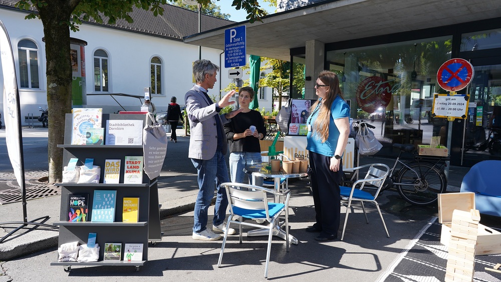 Die Initiative Stadt.Leben.Dornbirn zeigt sich in Kooperation mit dem Wirkraum der Caritas für den Parking Day verantwortlich. Hanspeter Simma vom Kernteam der Initiative erläutert: "Wir wollen erreichen, dass sich Dornbirn langfristig in eine gesunde und zukunftsfähige Stadt entwickelt", und ergänzt: "Darunter verstehen wir, dass Dornbirn seinen Bewohnern und Besucher ein Umfeld bietet, das den Menschen einen nachhaltigen Beitrag zur Gesundheit bietet." Dafür brauche es vor allem eine sanftere Mobilität und eine Entsiegelung der Städte, ebenso eine raschen Erweiterung von Fußgänger- und Begegnungszonen. Martina Hladek unterstreicht den Ansatz der Bürgerinitative: "Wir sind die urbanen Umdenker und als Bürgerinitiative ist es uns ein Anliegen, die Stadt für alle zu einem lebendigen Treffpunkt zu verwandeln. Mit dem Wirkraum Caritas haben wir einen idealen Partner gefunden. Die Initiatoren möchten mit dem Parking Day aufzeigen, was auf einem Parkplatz alles möglich ist, wenn dort kein Auto parkt. „Dazu haben wir gemeinsam mit dem Team vom WirkRaum der Caritas in Dornbirn verschiedene Akteur:innen in unserer Stadt eingeladen, sich auf den freien Plätzen zu präsentieren und mit den Menschen in einen Austausch zu gehen", sagt die engagierte Organisatorin. Mit dabei beim Parking day sind 15 Organisationen, Vereine und Unternehmen wie das Reperaturcafé, die Straßenzeitung Marie, Verein Bodenfreiheit, Klangkünstlerin Heide-Marie Michelon oder die Ojad Jugendwerkstätten. Neben Musik, Tanz und Gong Darbietungen gab es Riebel Essen, Basteln, Yoga und vieles mehr!