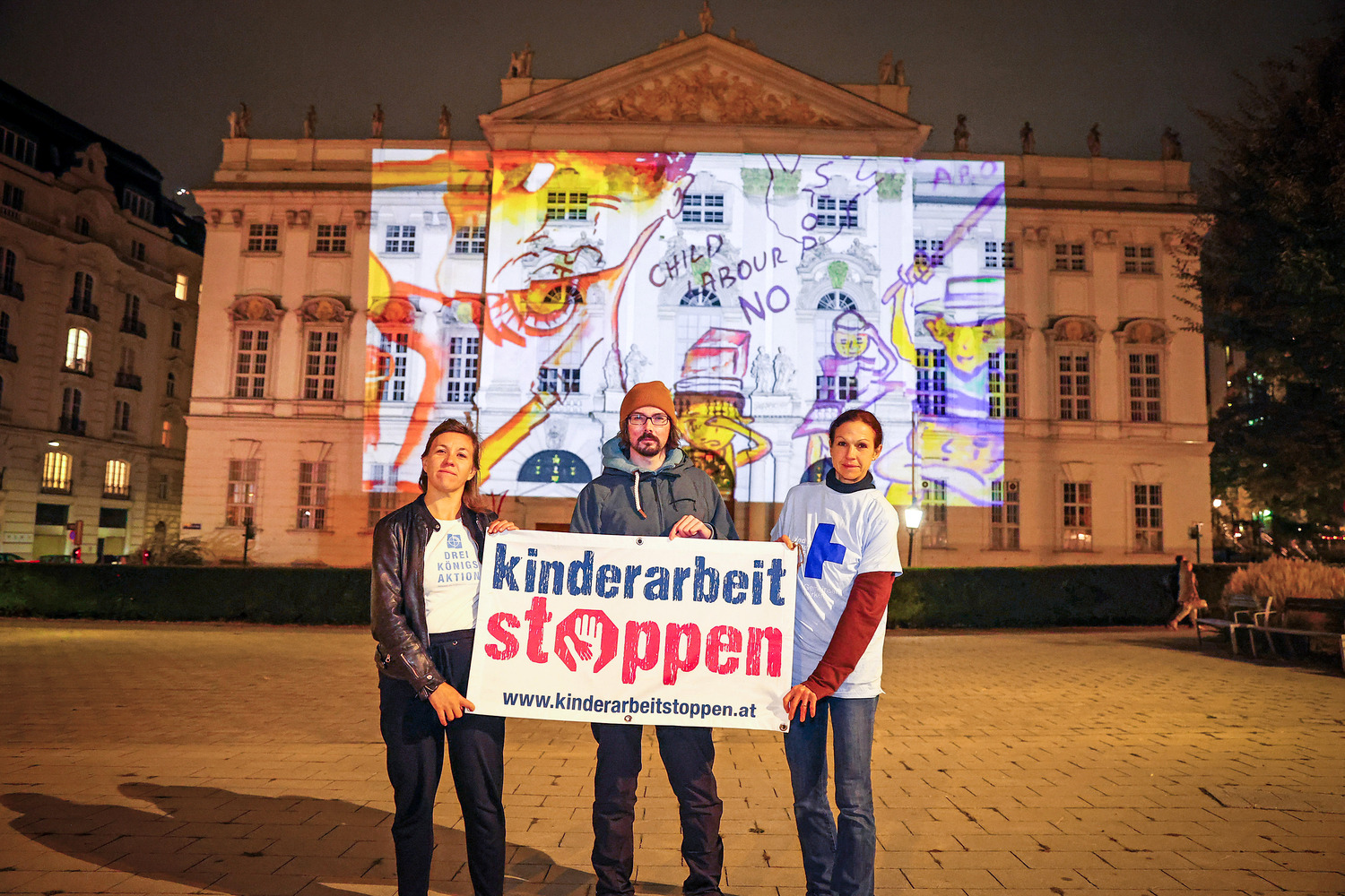Mit der Aktion rückt sie die 160 Millionen Kinder weltweit ins Rampenlicht, die als Folge von Armut regelmäßig arbeiten müssen. Das Justizministerium erstrahlte am Vorabend in bunten Farben eines Videospots mit Zeichnungen gegen Kinderarbeit von Kindern aus Österreich, aber auch Ländern des Globalen Südens wie etwa Ghana.