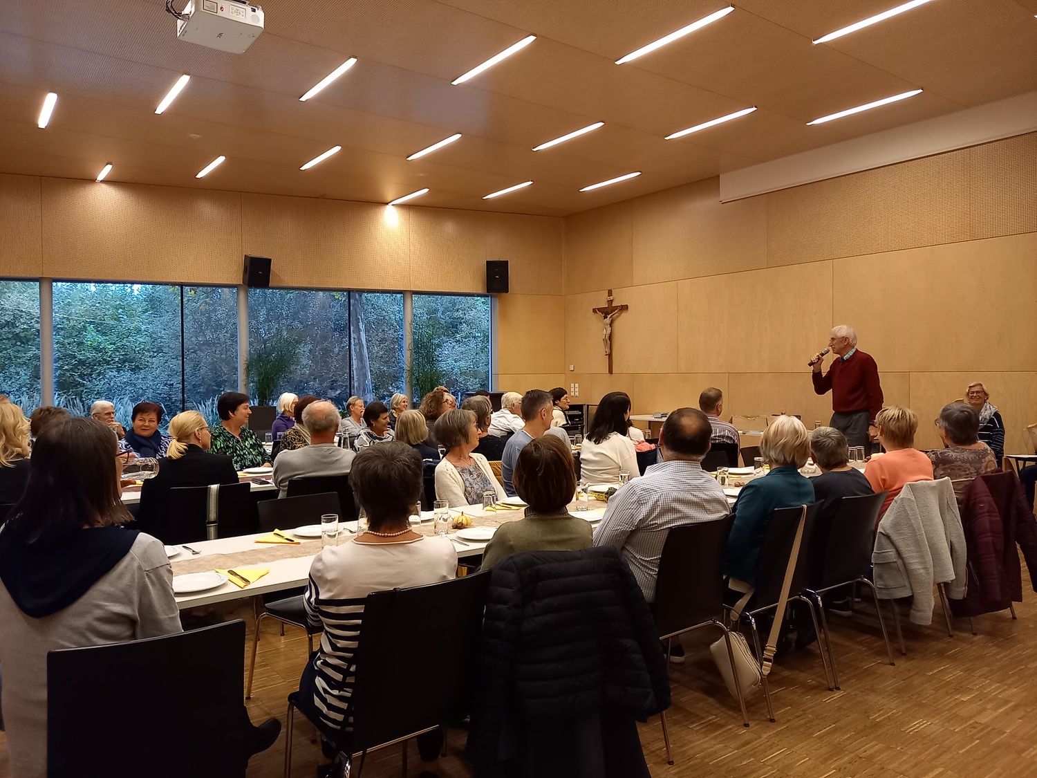 Gespannt hörten die rund 80 Gäste bei den zwei Danke-Abenden im Pfarrzentrum Feldkirch-Altenstadt sowie Dornbirn St. Martin dem Impulsvortrag von Pfarrer Elmar Simma zum Thema „die neuen Werke der Barmherzigkeit“ zu. Dabei sind es genau die Haussammler:innen sowie engagierte Menschen in den Pfarren und Sozialkreisen, die durch ihren Einsatz ein Zeichen gelebter Nächstenliebe setzen, wie Thomas Hebenstreit von der PfarrCaritas beschreibt. Der gesellige Abend, der von Musikerinnen des Projektes „Musik schenkt Freude“ umrahmt wurde und bei Häppchen der „Begeisterei“ Gelegenheit zum Gespräch bot, soll ein kleines „Danke“ für diesen Einsatz sein. Viel Anerkennung und Applaus erntete beispielsweise eine 90-jährige Haussammlerin, die immer noch im Einsatz ist und bei der sich PfarrCaritas-Mitarbeiterin Sandra Küng speziell bedankte.