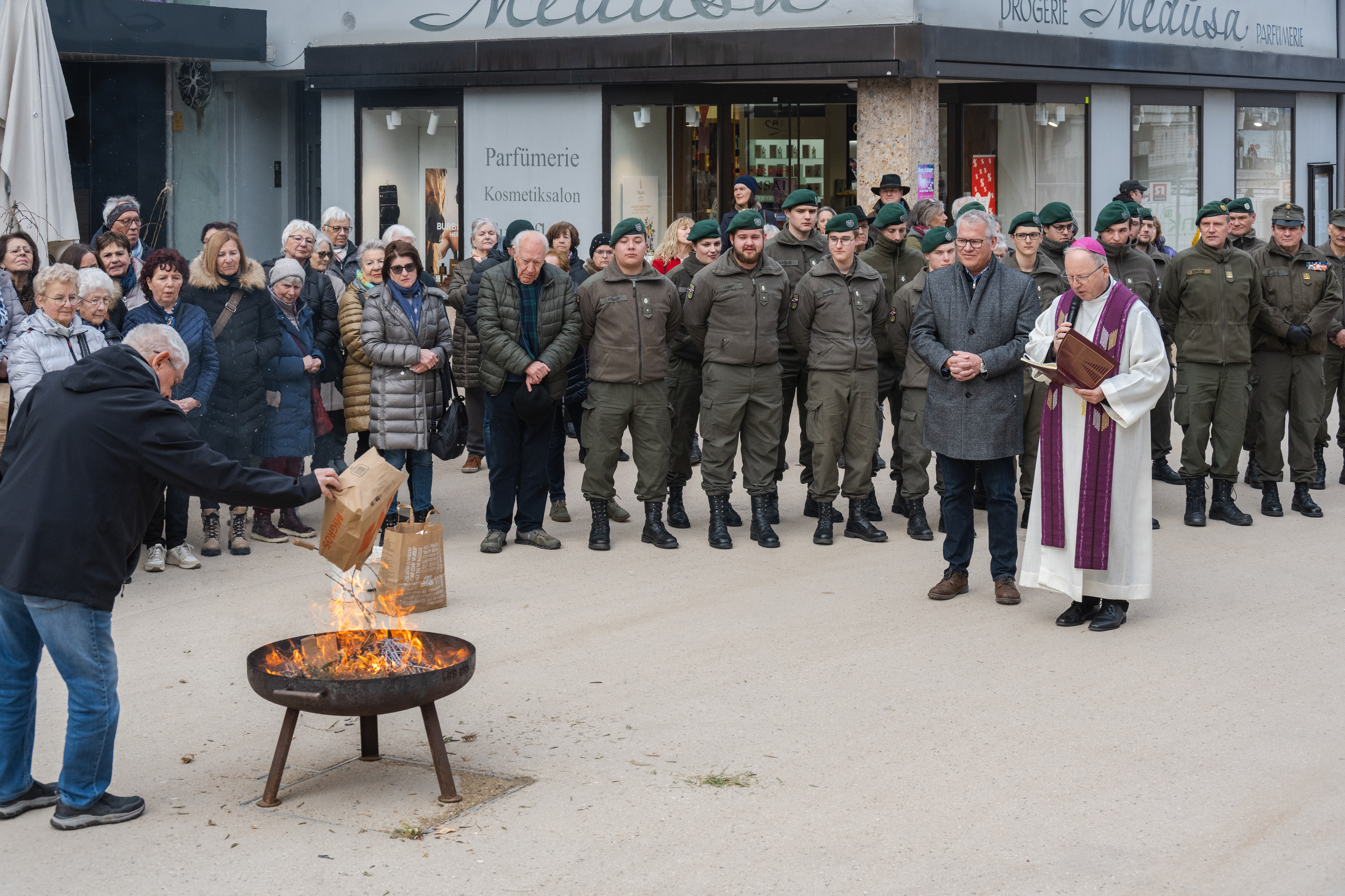 So wie der Fasching als Farbklecks in das Grau der Wintermonate fällt, so folgt auf diese ausgelassene Zeit das „Weniger ist Mehr“ der Fastenzeit. Im traditionellen Aschenritual am Bregenzer Leutbühel verbrennt Bischof Benno Elbs gemeinsam mit den vielen Teilnehmenden die Palmzweige des vergangenen Jahres. Mitgestaltet wird das Aschenritual übrigens durch Schülerinnen und Schüler der Bregenzer Berufsschule.