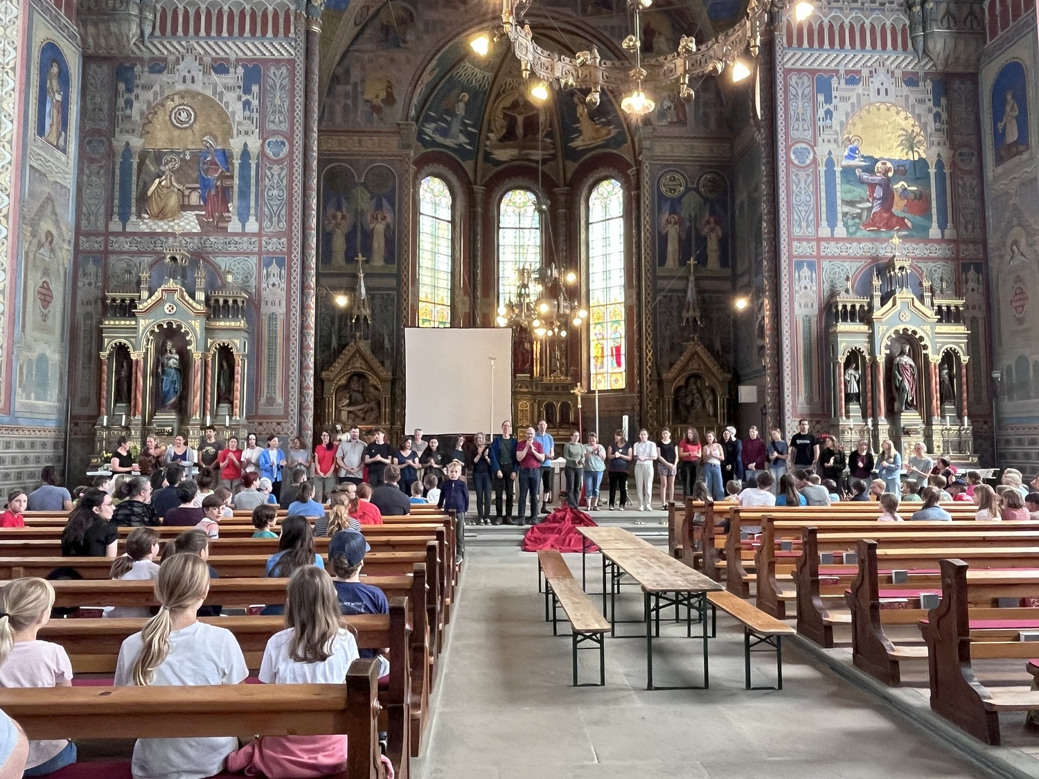 Der Höhepunkt des Abends war der gemeinsame Gottesdienst, der nicht nur durch Worte, sondern durch kreative Elemente berühren sollte wie schwebende Papiertauben von der Orgelempore in Richtung Altar. Pfingsten wird in Hatlerdorf nicht nur erzählt, sondern sinnlich erfahrbar gemacht.