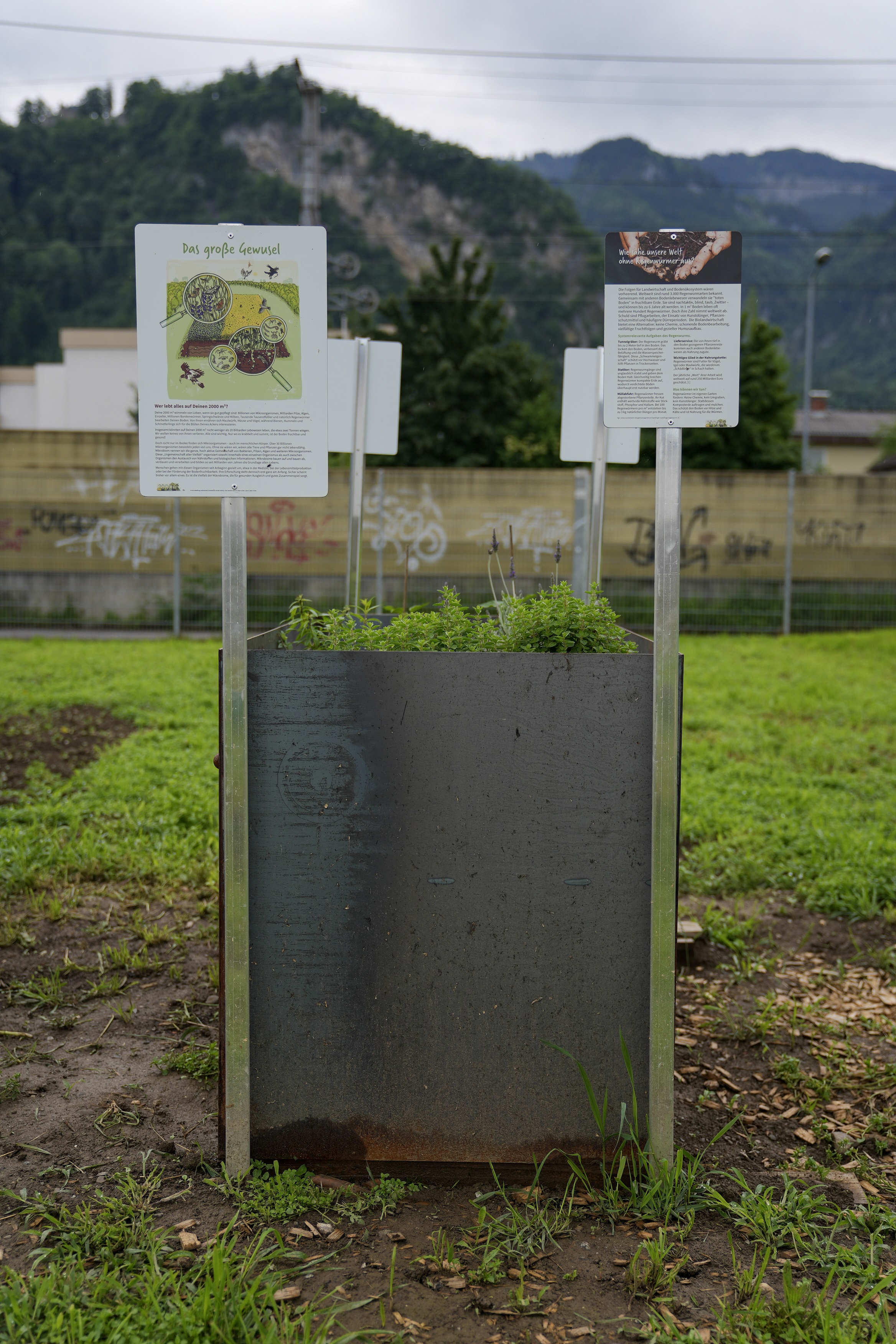 Der Weltacker soll aber nicht nur zeigen, welche Flächen für die Produktion für Gemüse oder Fleisch notwendig sind, sondern beschäftigt sich auch mit globalen Themen, wie Ernährungssicherheit, Biodiversität und Klimawandel. „Der Weltacker ist eine Bildungsinitiative und steht für die Botschaft, dass es genug Essen für alle gibt, wenn wir uns alle an den Rahmenbedingungen unserer Natur orientieren. Und dass jeder Einkauf ein Arbeitsauftrag an Landwirt*innen ist“, so Jürgen Mathis. Das Projekt Weltacker wurde 2013 in Berlin das erste Mal ausprobiert mit dem Ziel, die Bedeutung von Land- und Forstwirtschaft als Grundlage von Leben, Kultur und Zivilisation auch in der Gegenwart darzustellen. Auf Initiative von Jürgen Mathis vom Welthaus Vorarlberg ist nun auch in Hohenems, in der Nähe vom Bahnhof, ein Weltacker entstanden.