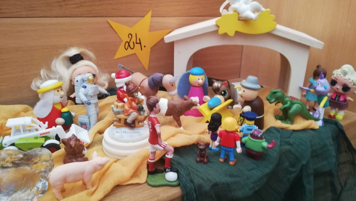 Nach 24 Tagen, am 24. Dezember stehen nun 24 Figuren, an die vielleicht vorher niemand mehr gedacht hat, vor der Krippe und freuen sich wie du und ich auf das Wunder der Heiligen Nacht.