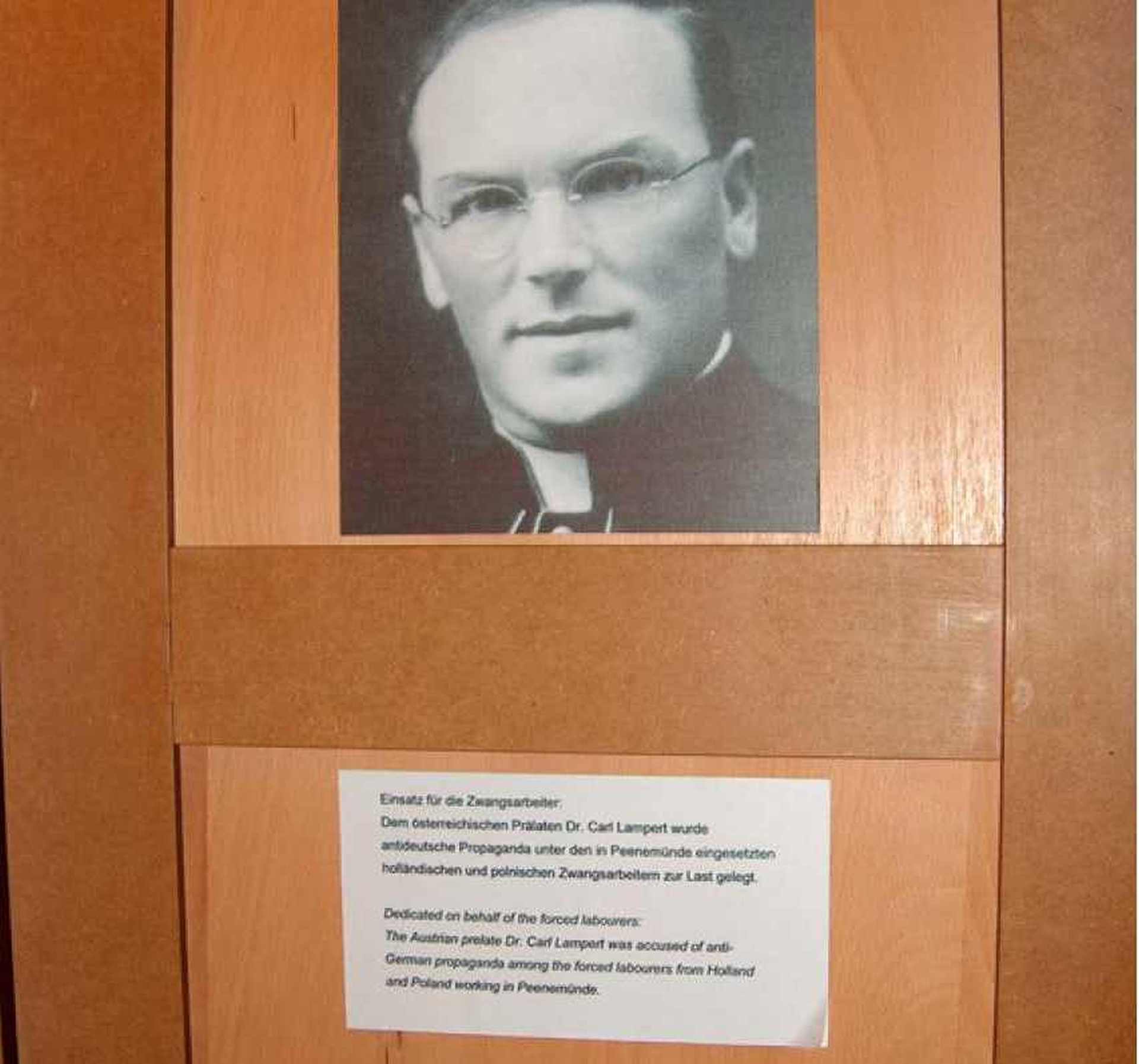 Im nunmehrigen „Historisch-Technischen Informationszentrum“ auf dem Gelände der ehemaligen nationalsozialistischen Heeresversuchsanstalt Peenemünde ist ein Raum der „Opposition“ gewidmet, wo auf Carl Lampert verwiesen wird: „Einsatz für die Zwangsarbeiter: Dem österreichischen Prälaten Dr. Carl Lampert wurde antideutsche Propaganda unter den in Peenemünde eingesetzten holländischen und polnischen Zwangsarbeitern zur Last gelegt.“