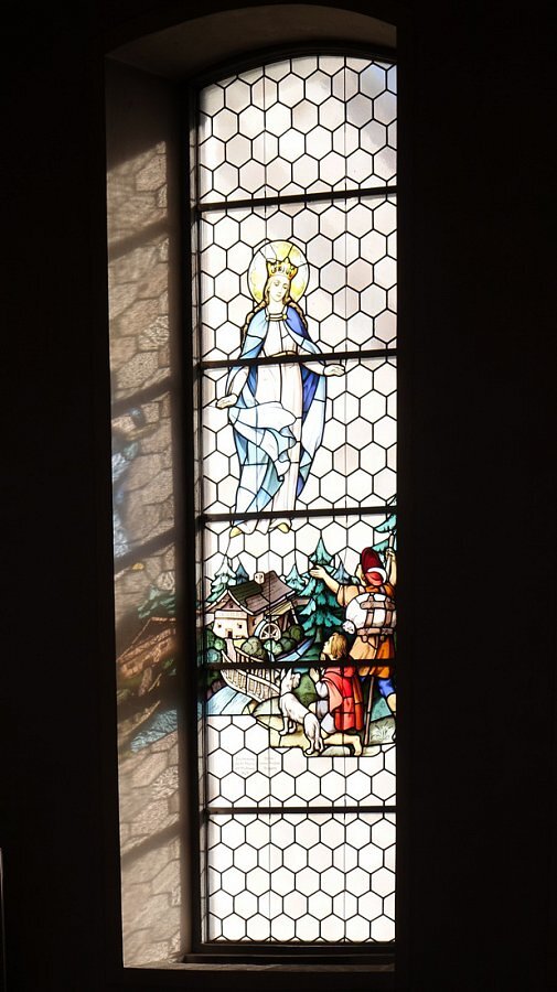 Maria bestimmt Platz und Bau der Kirche 1650, Stifter Stefan Kohler Bregenz 1941