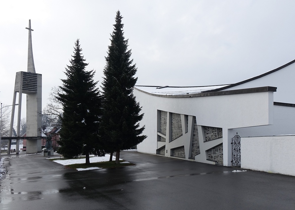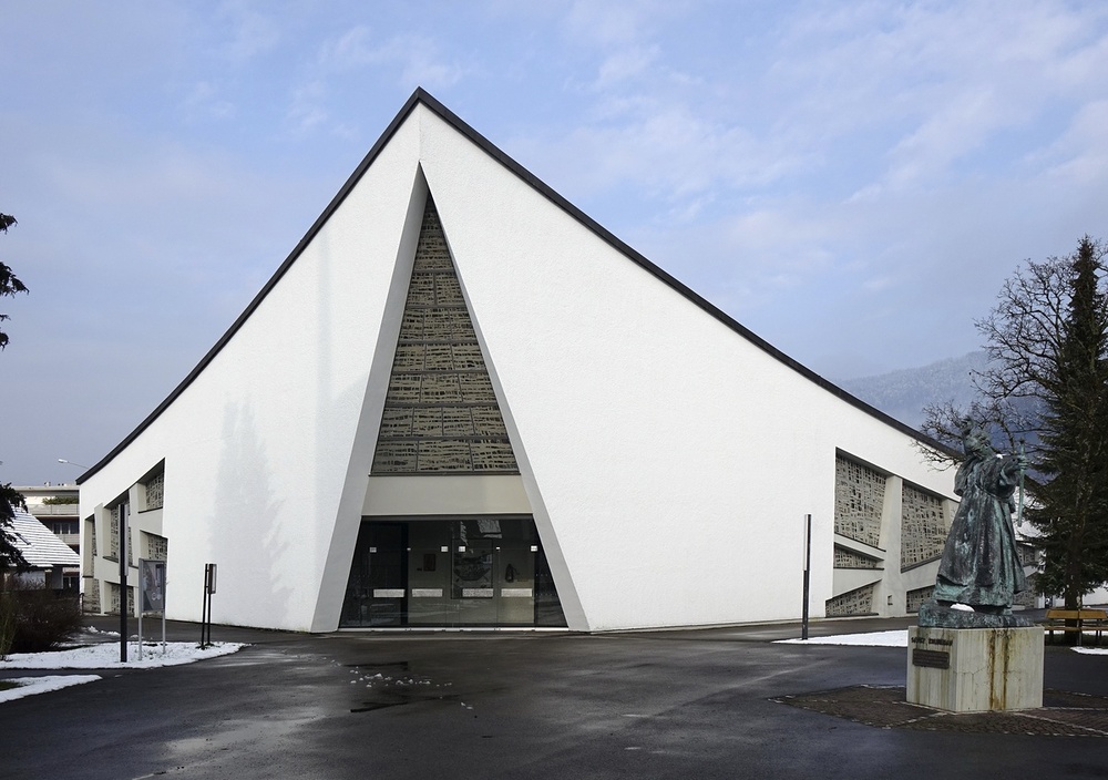 Kirche, Pfarrsaal, Priesterwohnung und Pfarrkindergarten 1962 bis 1966 nach Plan Architekt Hans Burtscher