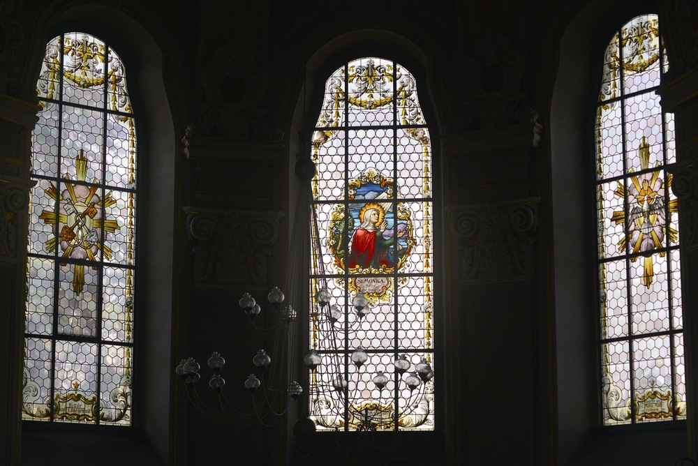 Mitte hl. Monika und Herz Mariä, rechts Hl. Geist und Passionskreuz;