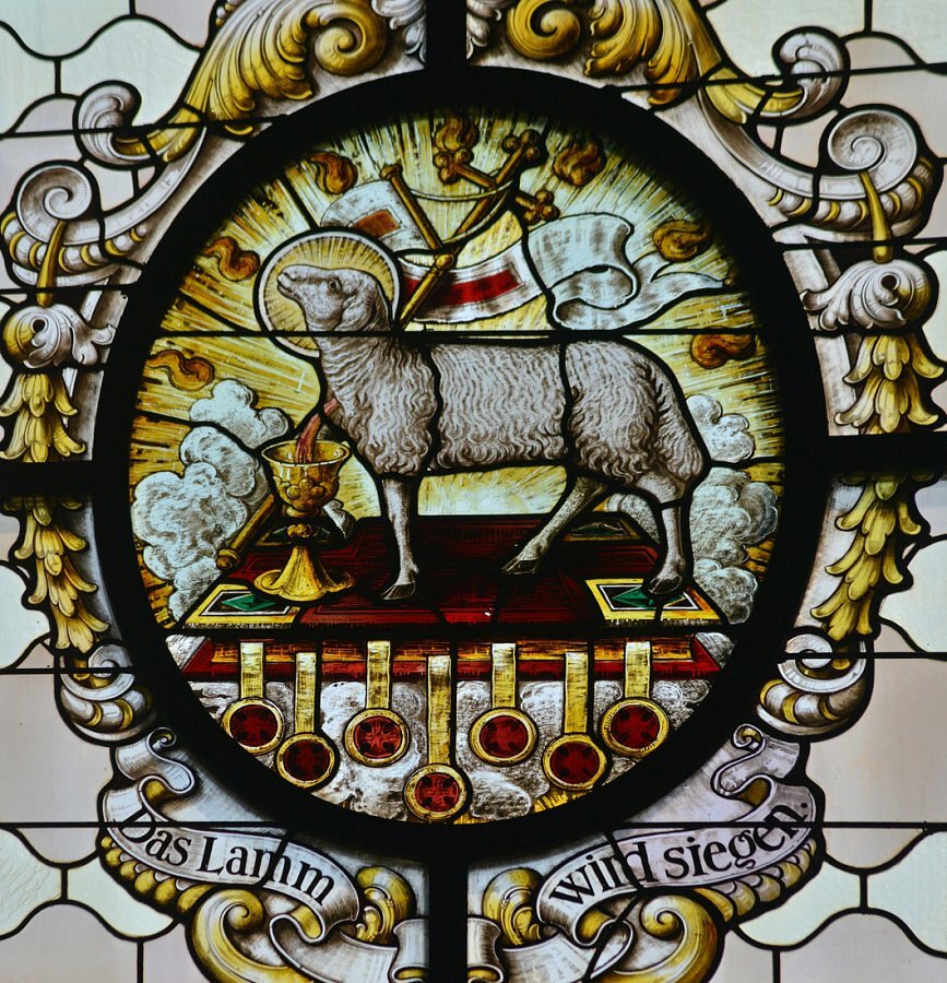 Im Querschiff von Glasmalerei F.X.Zettler München: