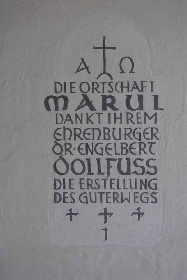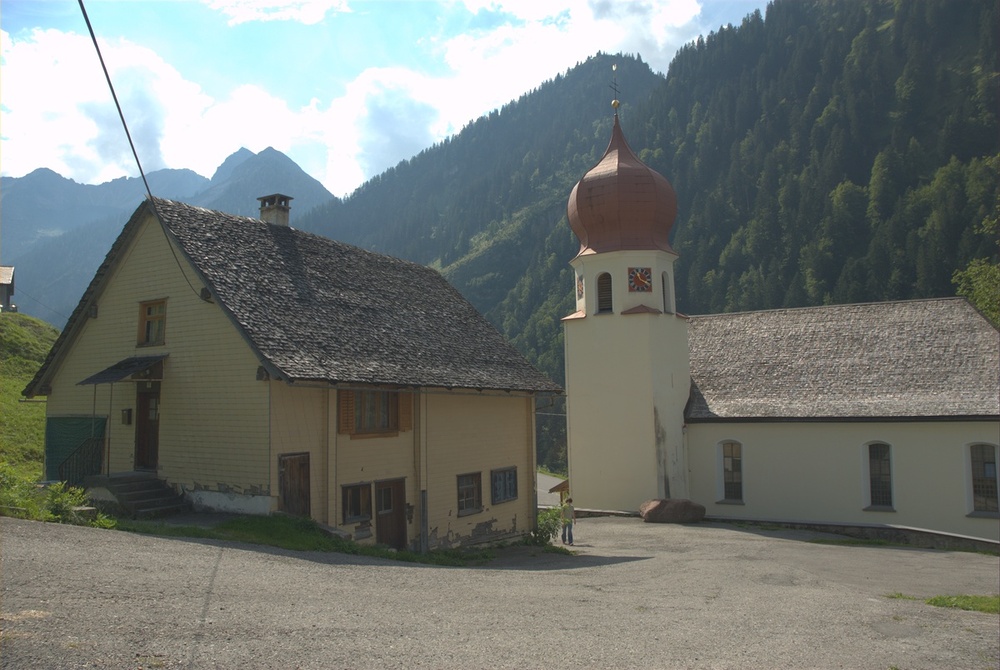 Um 1670 ebaut,1847 verlängert, 1870 Vorzeichen erbaut, 1949 Restaurierung nach Plan von Architekt Anton Rhomberg
