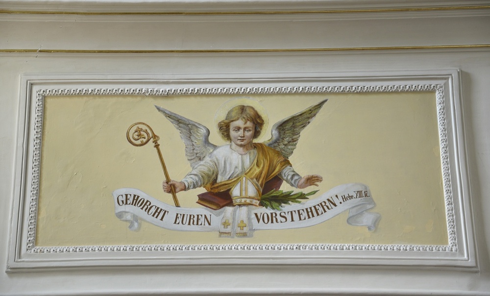 Langhaus: li.: hll. Elisabeth und Nikolaus, re. hll. Konrad, Mauritius, Wendelin, Antonius, Jesus