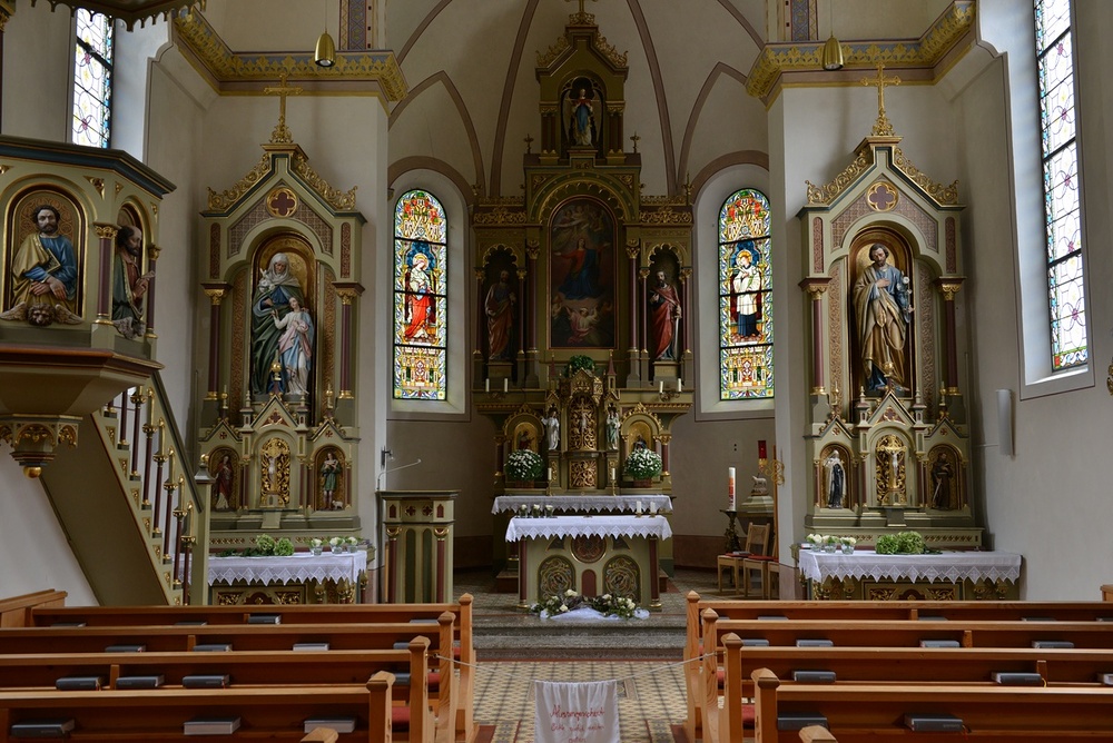 1639 erste Kirche geweiht, 1863 Brand, 1864-67 Neubau