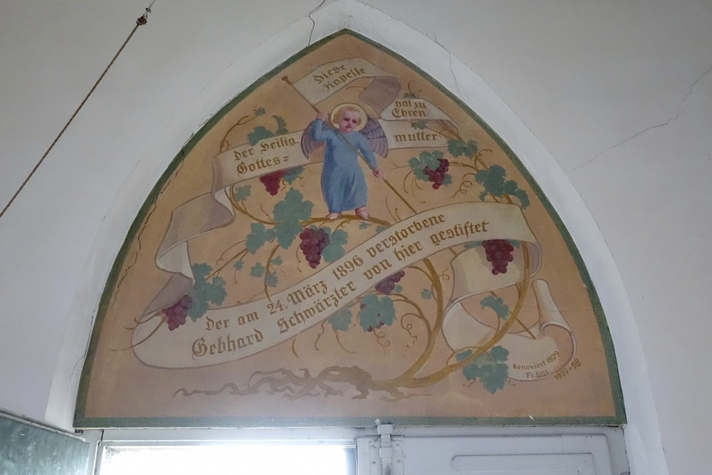 1964 Lourdesgrotte entfernt und Glasfenster von Hubert Berchtold eingebaut: