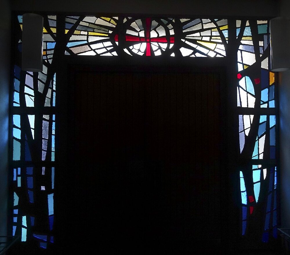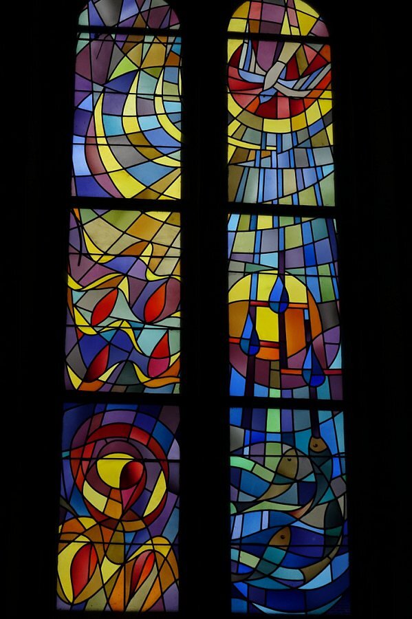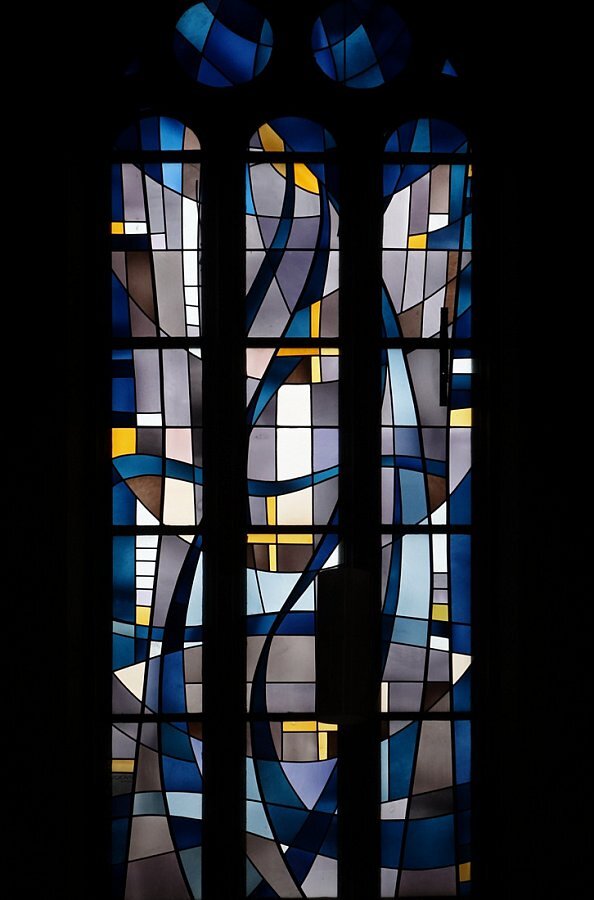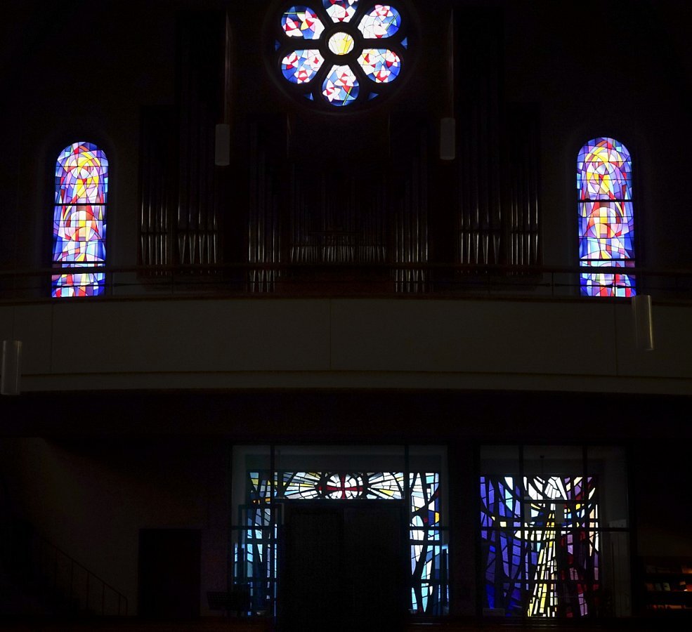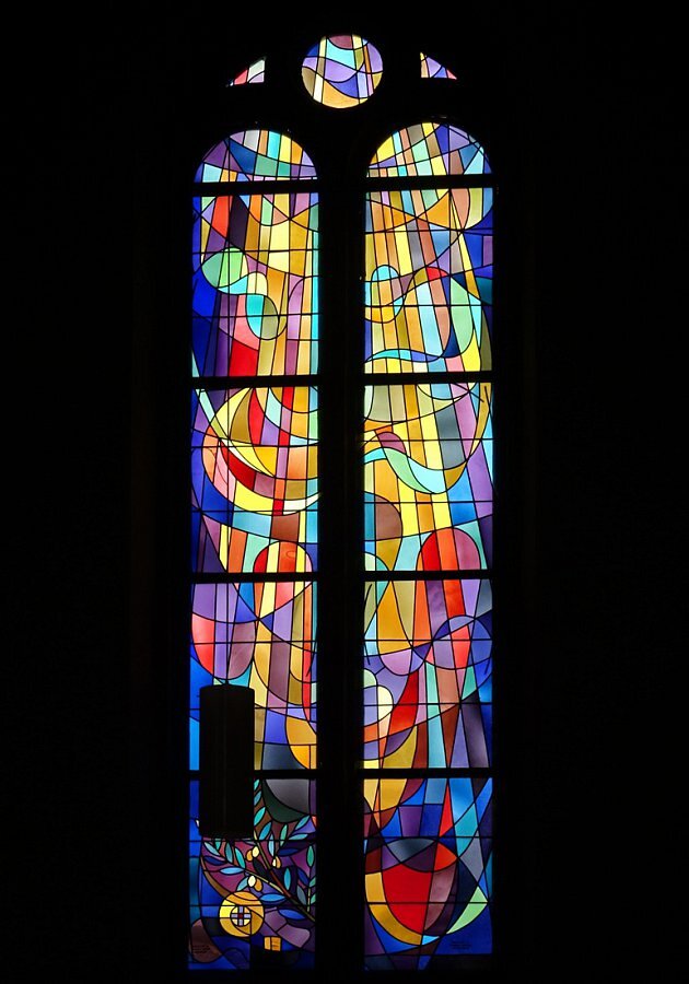 im 4. Joch, im Altarraum und über der Orgel nach Entwürfen von Willi Buck, 1970 -1972