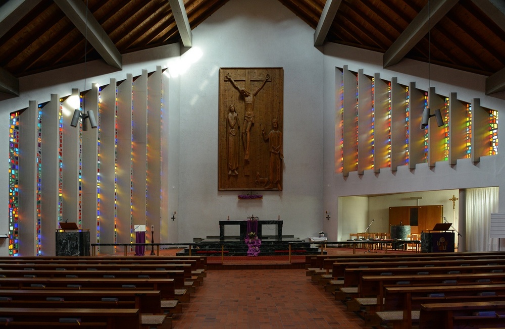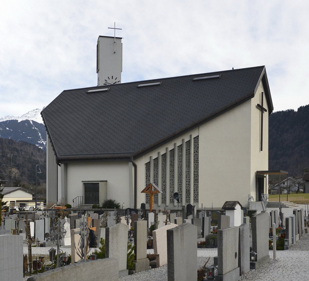 Die Kirche wurde im Südosten der Alten Pfarrkirche, am anderen Friedhofsende, im Jahre 1959 nach den Plänen der Architekten Hans und Ingo Fessler errichtet und im Jahre 1960 geweiht. Der Grundriss der Kirche bildet ein Achteck und wird zeltartig von einem hohen Satteldach abgeschlossen. Die Wände werden von farbigen Betonglasfensterschlitzen lamellenartig strukturiert.
