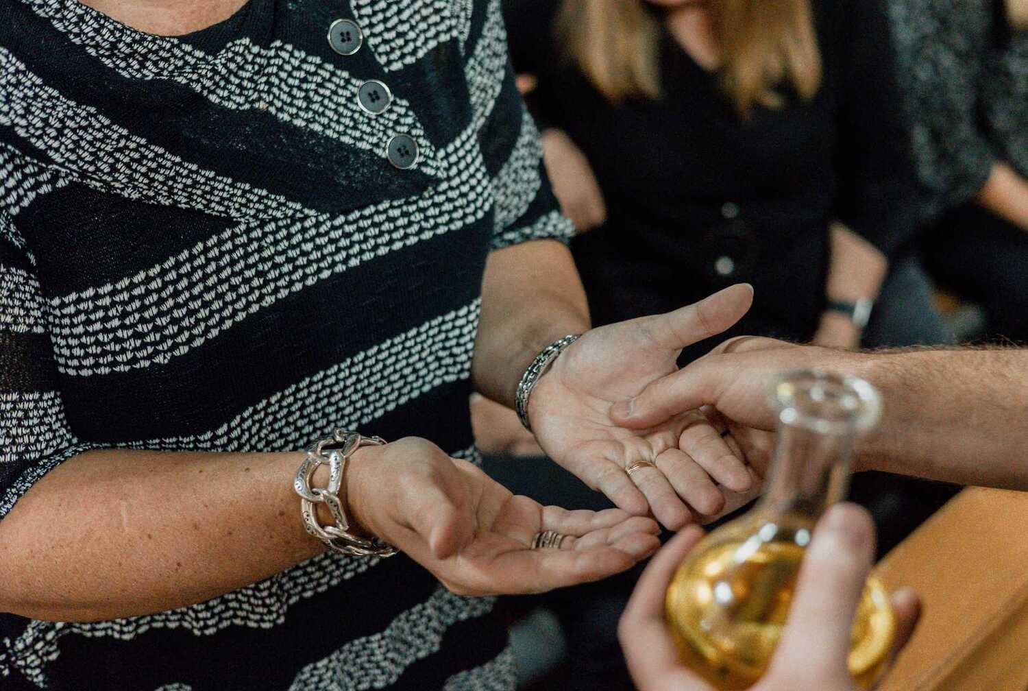 Trost durch die heilsame Begegnung mit Gott im Sakrament wird zugesprochen. Stirn und Hände werden mit dem „Öl der Stärkung“ (Krankenöl) gesalbt. Durch das Berühren und Salben wird erfahrbar, was zugesagt wird: der Herr steht mir bei; er hält seine schützende Hand über mich und erfüllt mich mit der Kraft, die mich atmen lässt, mit seinem Geist; der Herr, nimmt mich an der Hand, er begleitet mich und richtet mich auf. In der Feier der Krankensalbung dürfen wir zeichenhaft die großartige Zusage der Nähe unseres Gottes feiern.