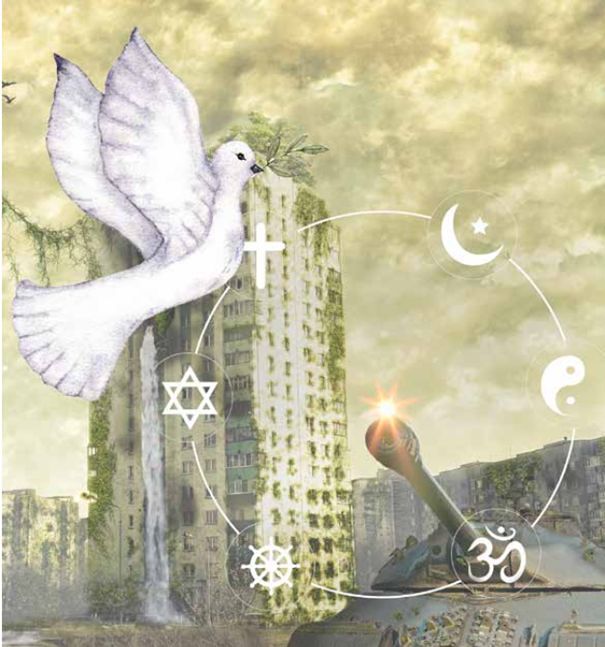 Einerseits sprechen jüdisch-christliche Visionen von den Schwertern, die zu Pflugscharen werden, versteht sich der Islam auch von seinem Namen her als Religion des Friedens, betonen Buddhist*innen, dass Buddha keine Kriege geführt habe. Andererseits sind Erfahrungen von religiös motivierter, kriegerischer Gewalt auch gegenwärtig bedrohliche Realität.