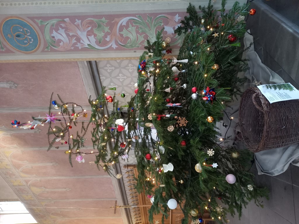 Eine weitere fast 90jährige Eggerin berichtet, dass in ihrer Familie für den Nikolaus Teller aufgestellt worden seien und man am nächsten Morgen schnell aufgestanden sei und gehofft habe, dass der „gute Mann“ Äpfel, Feigen, Nüsse oder gar eine Orange draufgelegt habe. Das goldige Orangenpapier hätten sie dann in das Nachtkästchen gelegt und noch lange, lange daran gerochen. Dem Nikolaus selbst habe man ein Gläschen Wein und ein paar Kekse hingestellt. Die Freude sei riesig gewesen, wenn Teller und Glas leer gewesen seien. Als sie selbst schon Kinder gehabt hat, erzählt Agath, sei sie, wie vermutlich die meisten Egger Eltern, beim Klosomart in die Spielwarenausstellung im Ochsen gegangen, um den Kleinen den ein oder anderen Herzenswunsch zu erfüllen. Agath meinte, früher sei man zwar arm gewesen, aber das Leben schön. Dekoriert habe man aus Mangel an finanziellen Mitteln nicht so sehr. Der Christbaum selbst soll der Legende nach übrigens aus Freiburg stammen. Dort habe ein Bäcker 1419 einen Nadelbaum mit Äpfeln und Lebkuchen geschmückt und so den Weihnachtsbaum erfunden.